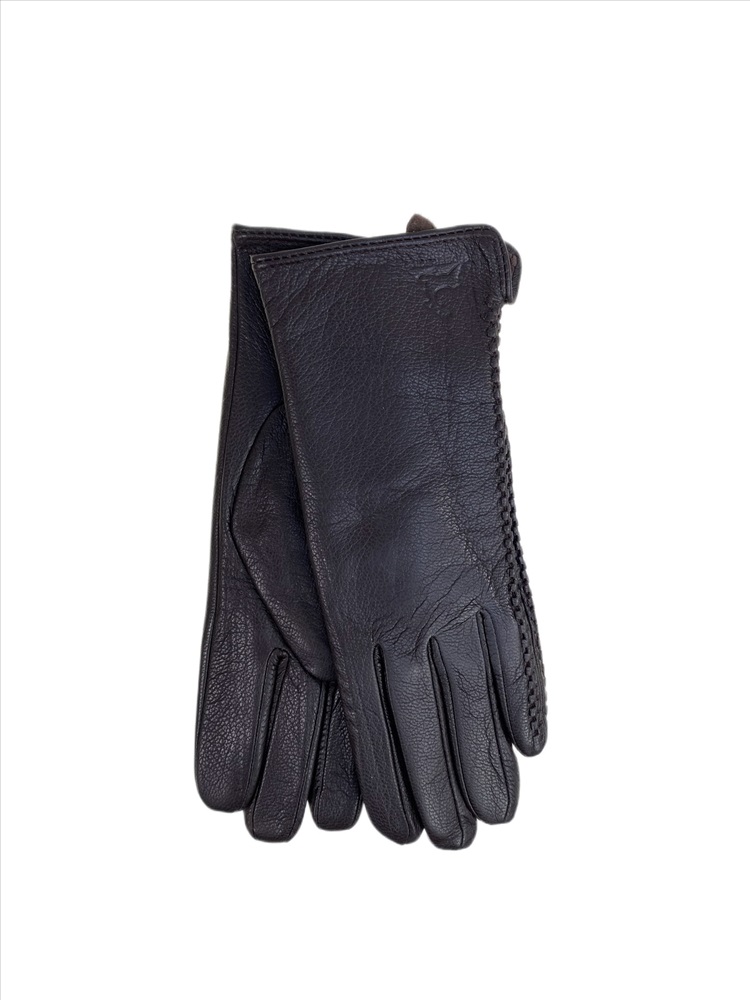 Женские перчатки из натуральной кожи, цвет шоколад