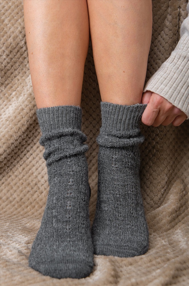 Теплые женские носки выполнены из приятной к телу пряжи с добавлением натуральной шерсти. Однотонные высокие носки серого цвета идеальны для уютных осенних вечеров в компании пледа и какао. Мягкая пряжа из шерсти делает удлиненные носки идеальными для осени и зимы. Благодаря полиамиду и эластану в составе они сохраняют форму даже после частых стирок и будут радовать девушку не один сезон. Домашние носочки нежно облегают ноги и не сползают при активных движениях благодаря плотной вязаной резинке. Красивый узорный орнамент добавляет нотку кокетства и эстетики. Вязаные носки оценят те, кто любит проводить время на свежем воздухе, подойдут женщинам и девочкам-подросткам. Термоноски подходят для дома и зимних видов спорта. Шерстяные носки станут приятным дополнением к подарку на Новый год или Рождество! Комментарии к товару