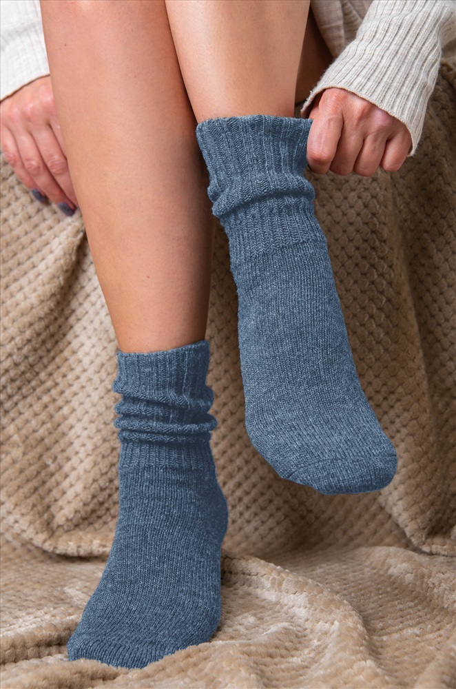 Теплые женские носки выполнены из приятной к телу пряжи с добавлением натуральной шерсти. Однотонные высокие носки синего цвета идеальны для уютных осенних вечеров в компании пледа и какао. Мягкая пряжа из шерсти делает удлиненные носки идеальными для осени и зимы. Благодаря полиамиду и эластану в составе они сохраняют форму даже после частых стирок и будут радовать девушку не один сезон. Домашние носочки нежно облегают ноги и не сползают при активных движениях благодаря плотной вязаной резинке. Вязаные носки оценят те, кто любит проводить время на свежем воздухе, подойдут женщинам и девочкам-подросткам. Термоноски подходят для дома и зимних видов спорта. Шерстяные носки станут приятным дополнением к подарку на Новый год или Рождество! Комментарии к товару