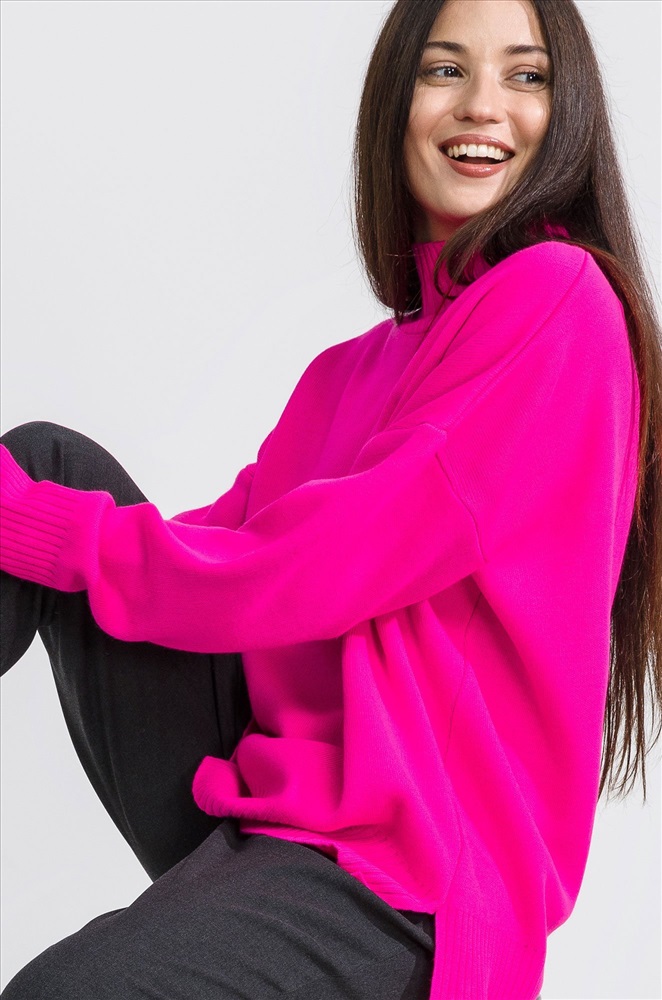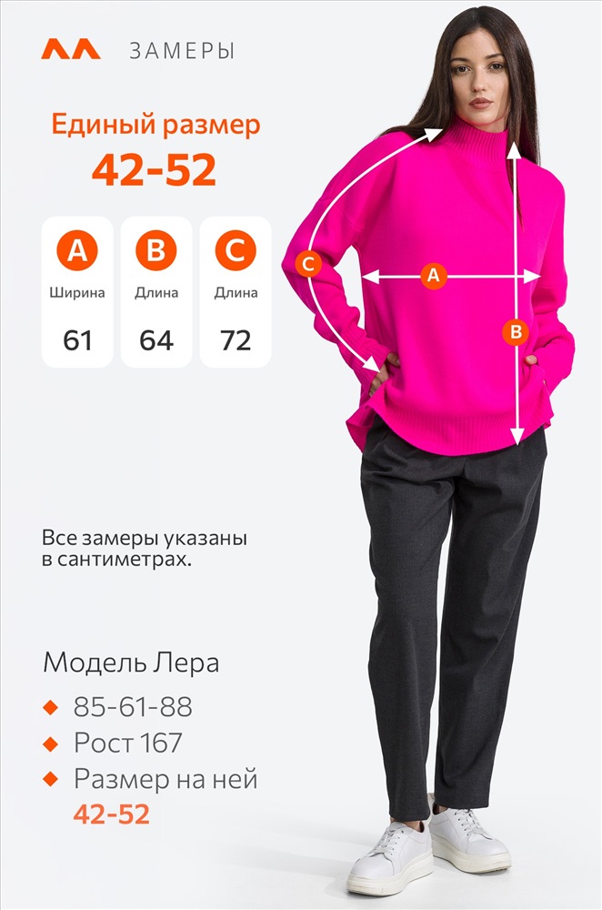 Преимущества: — вязаный трикотаж с шерстью и хлопком обеспечивает комфорт, тепло и долговечность; — теплый свитер с горлом приятен к телу, не колется, подходит для ежедневных образов; — розовый свитер оверсайз создаёт стильный просторный силуэт, не сковывает движения; — спущенная линия плеча добавляет расслабленности; — высокий воротник-стойка защищает шею от ветра и холода; — небольшие боковые разрезы дарят удобство и свободу движений; — вязаный джемпер с высоким воротом и удлиненной спинкой подходит для повседневных образов — в офис, на прогулку, в поездку или встречу с друзьями; — свитер one size подходит на разные типы фигур. Свитер для женщин — идеальный выбор для осени и зимы.