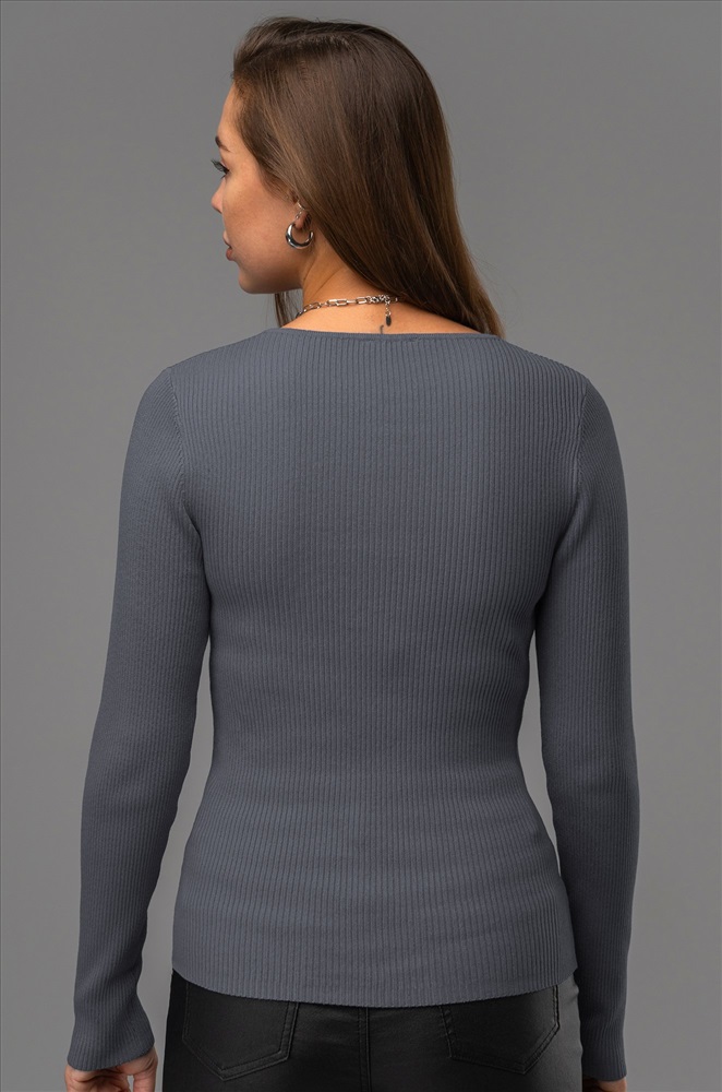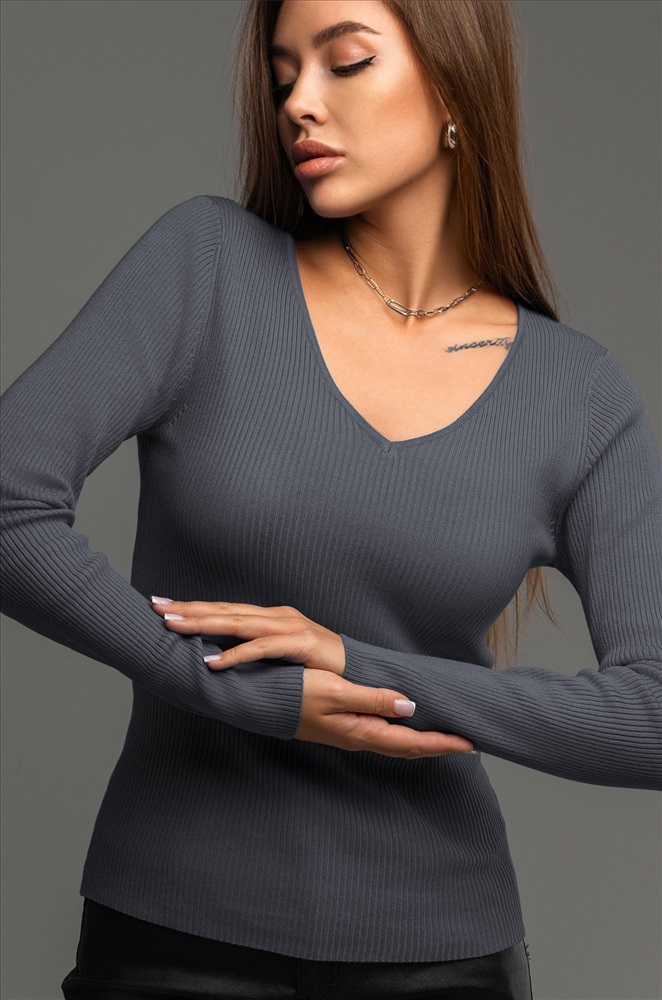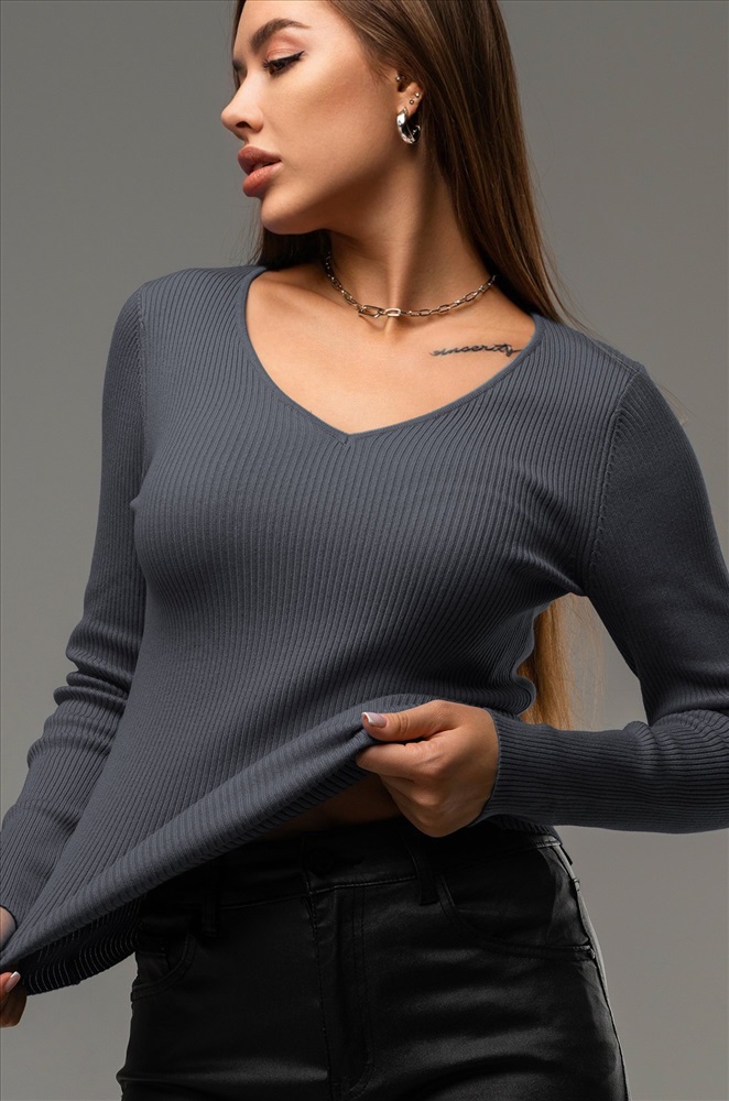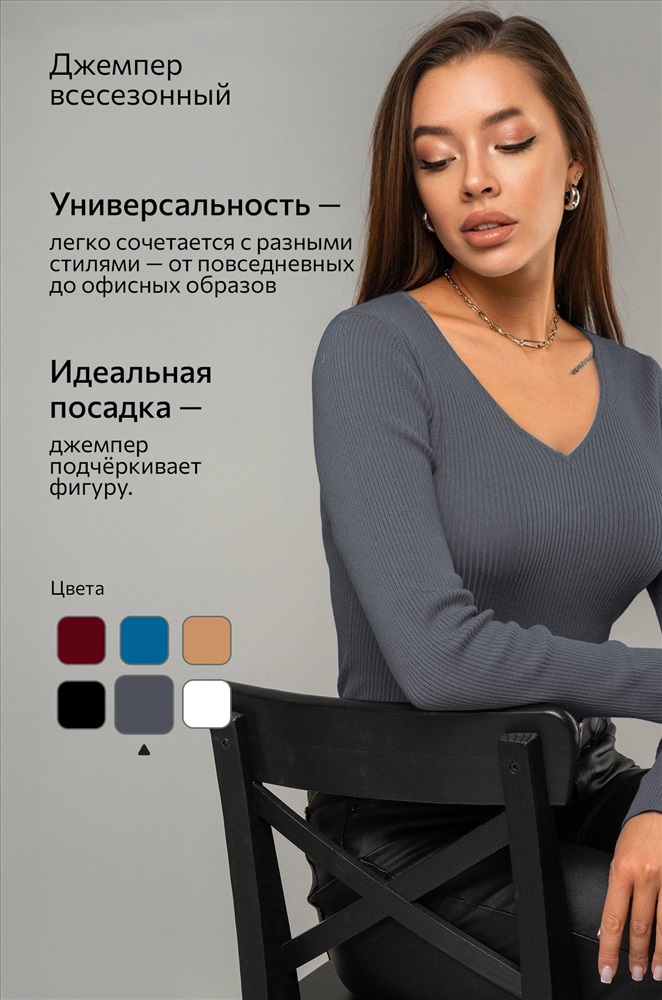Женский джемпер в рубчик с длинным рукавом станет незаменимой частью гардероба в осенний и весенний периоды. Однотонная модель поможет создать стильные образы для работы в офисе и учебы.
