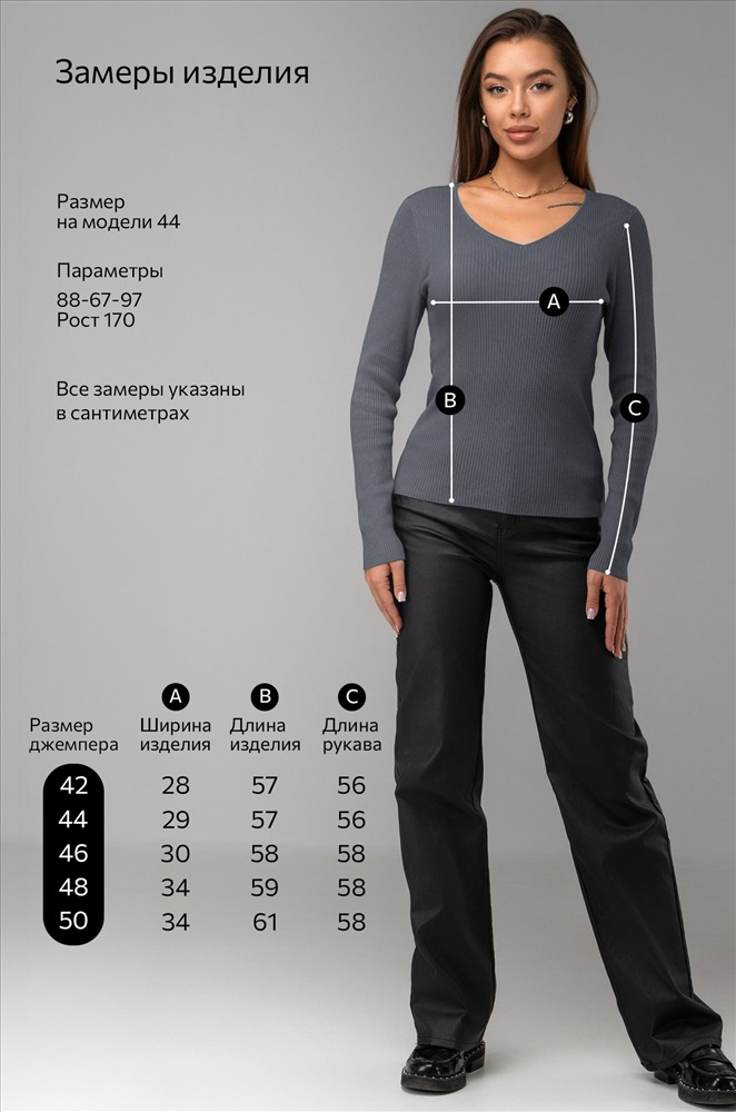 Размер 50: длина:61 см; ширина:34 см; длина рукава внешняя:58 см; длина рукава внутренняя:44 см.
