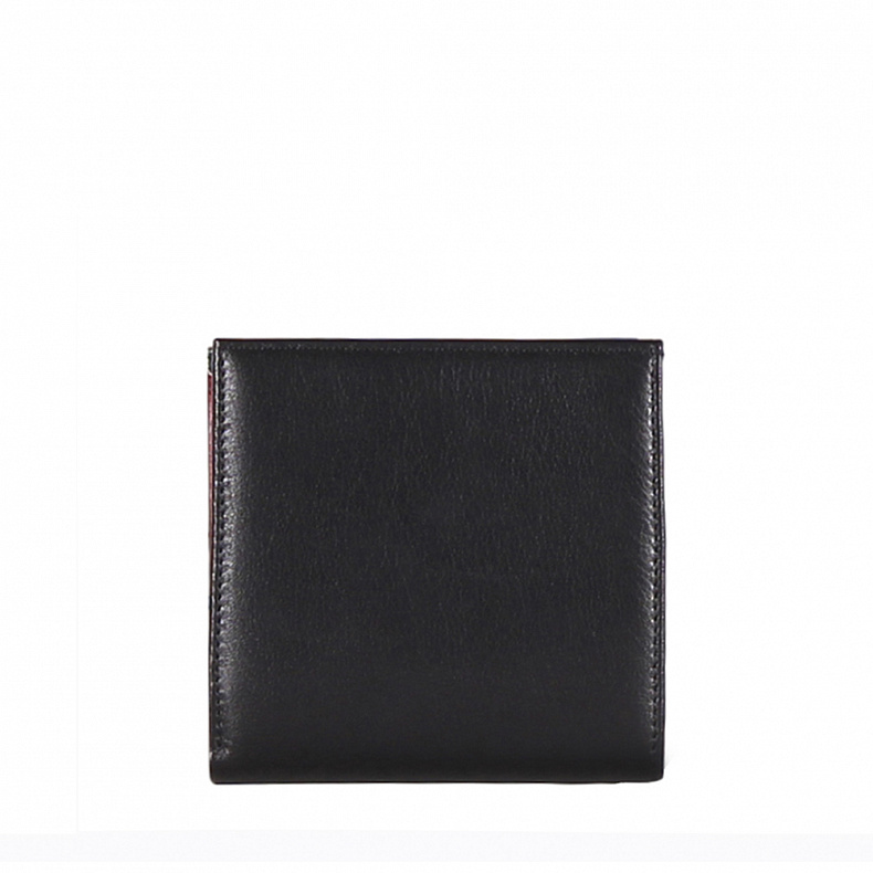 Компактный кошелек складывается пополам, выполнен из натуральной кожи. Дополнен серебристой фурнитурой. Закрывается на кнопку.