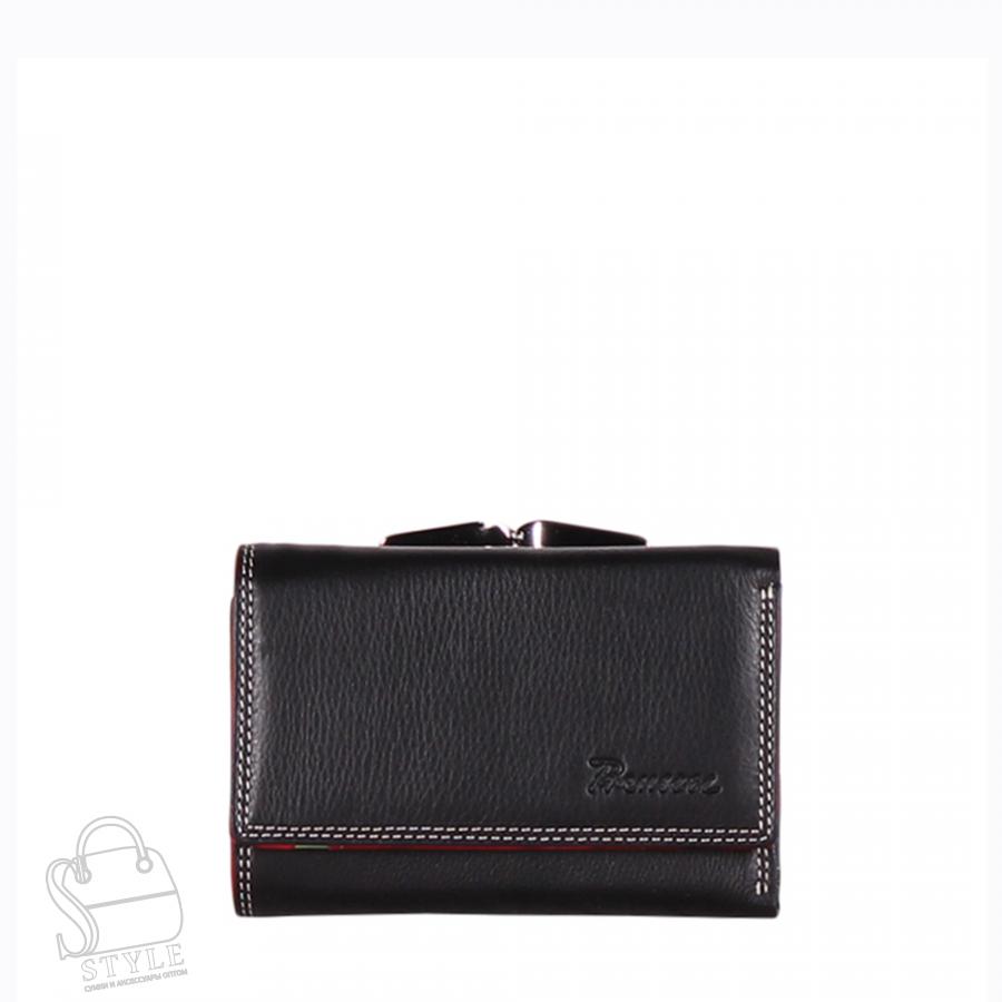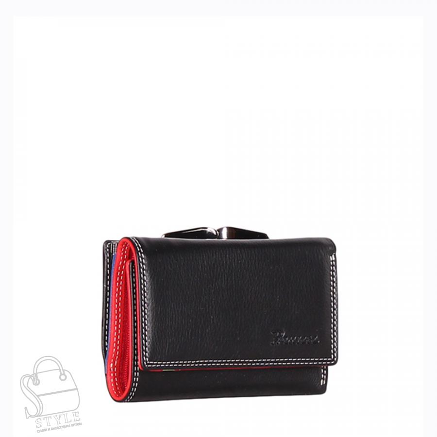 Артикул: 122-6602A Материал: Натуральная кожа Цвет: Черный Длина (см): 8 Высота (см): 12 Кошелек складывается пополам. Снаружи карман застегивается на фермуар. Внутри пять отделов для карт, отдел для купюр и один кармашек на молнии. Фурнитура блестящее серебро. Комментарии к товару