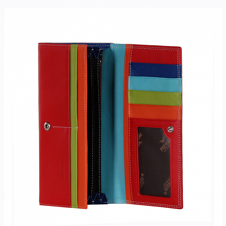 Высота (см): 9 Бренд: Prensiti Материал: Натуральная кожа Полноразмерный кошелек складывается пополам, выполнен из натуральной кожи. Дополнен серебристой фурнитурой. Закрывается на кнопку. Внутри: девять отделов для карт, три отдела для купюр и один кармашек на молнии. Снаружи: один карман закрывается на фермуар. Комментарии к товару