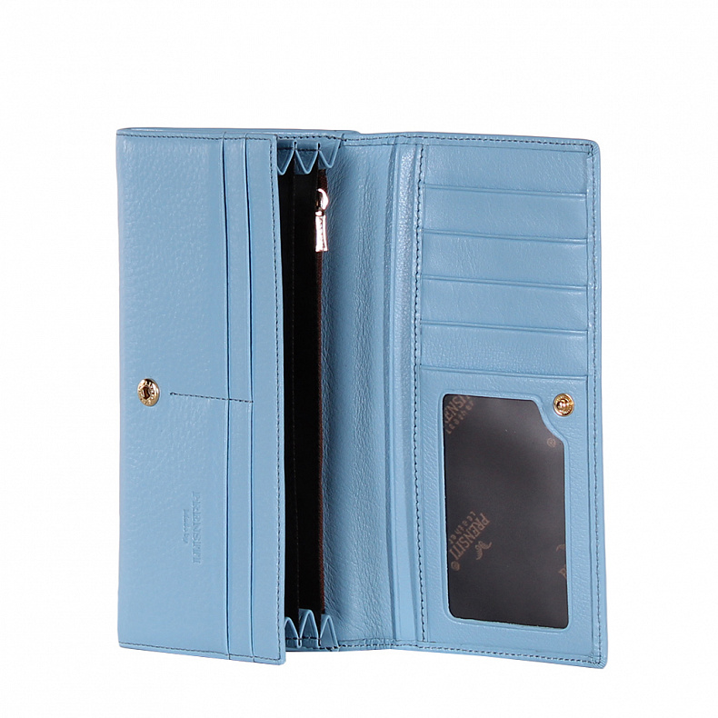 Высота (см): 8 Бренд: Prensiti Материал: Натуральная кожа Полнокупюрный кошелек, выполнен из натуральной кожи. Дополнен золотистой фурнитурой. Закрывается на клапан. Внутри: девять отделов для карт, три отдела для купюр. Один на молнии. Снаружи: карман закрывается на фермуар. Комментарии к товару