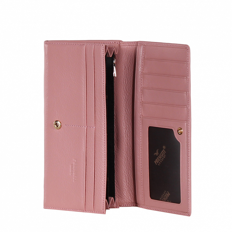 Высота (см): 8 Бренд: Prensiti Материал: Натуральная кожа Полнокупюрный кошелек, выполнен из натуральной кожи. Дополнен золотистой фурнитурой. Закрывается на клапан. Внутри: девять отделов для карт, три отдела для купюр. Один на молнии. Снаружи: карман закрывается на фермуар. Комментарии к товару