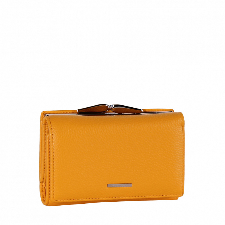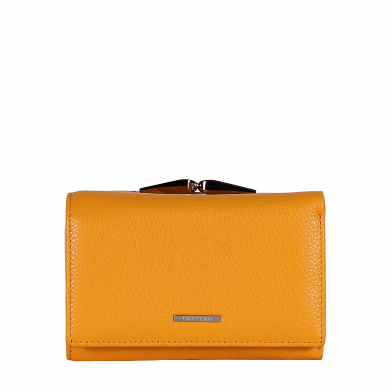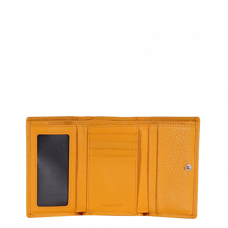 Высота (см): 8 Бренд: Pratero Материал: Натуральная кожа Компактный кошелек складывается пополам, выполнен из натуральной кожи. Дополнен золотистой фурнитурой. Закрывается на кнопку. Внутри: два отдела для купюр, один карман на молнии и восемь карманов для визитных и пластиковых карт. Снаружи: карман один карман закрывается на фермуар. Комментарии к товару