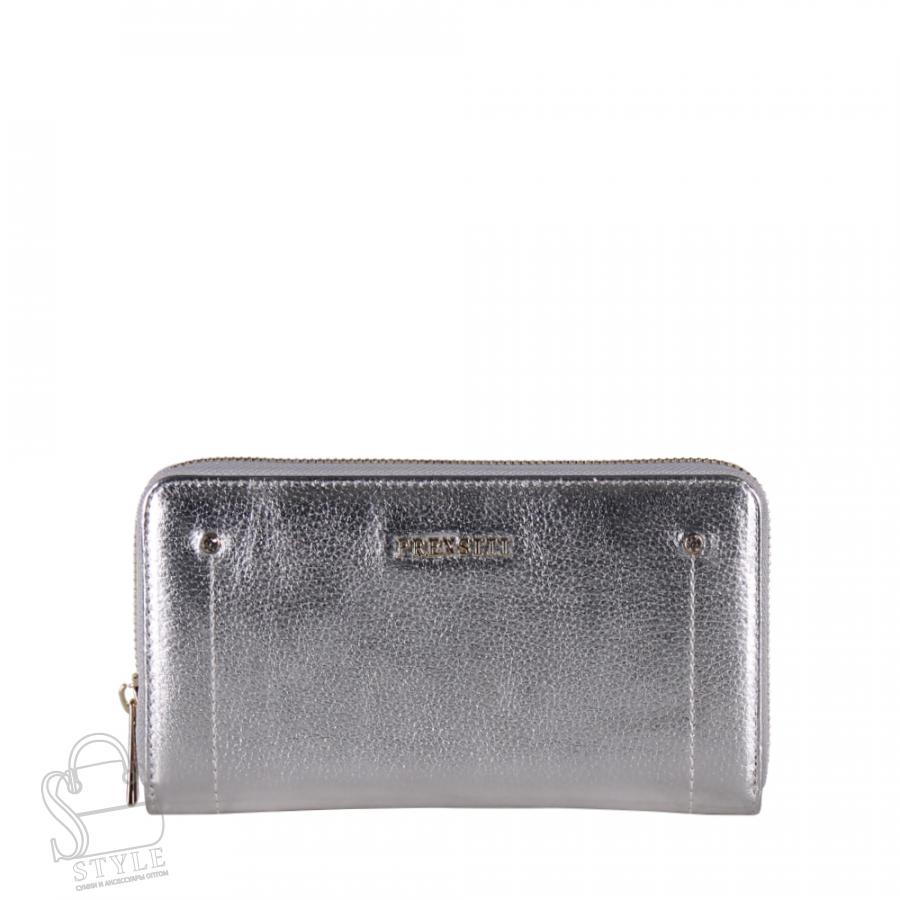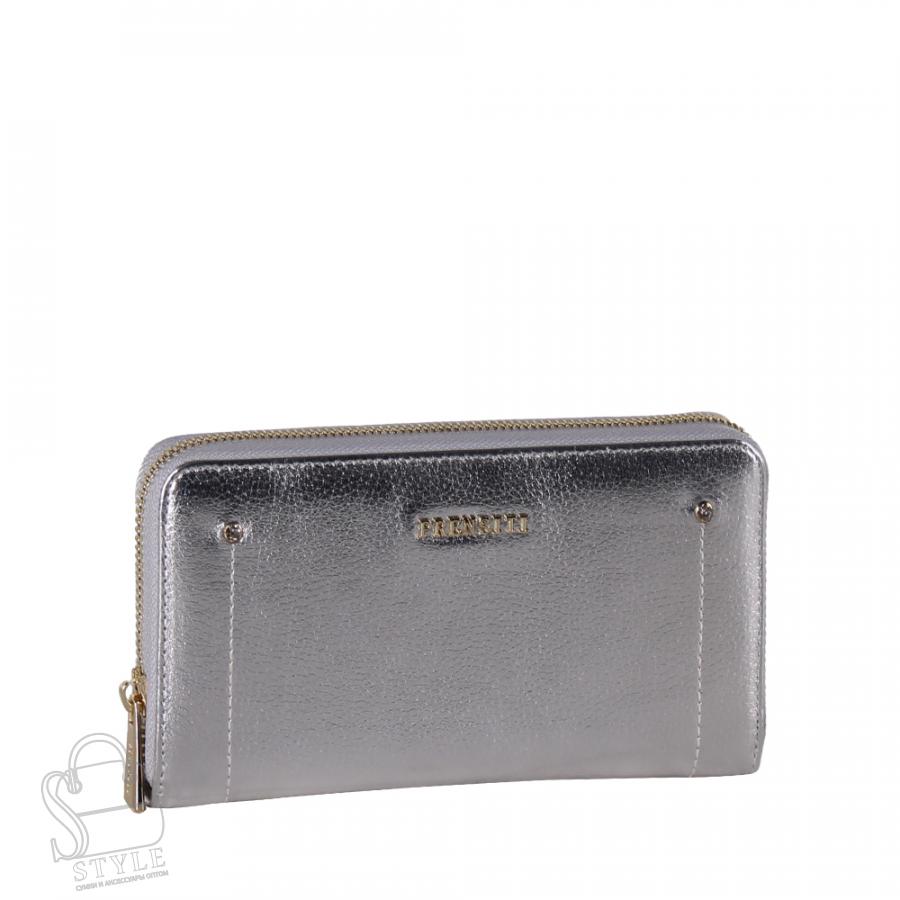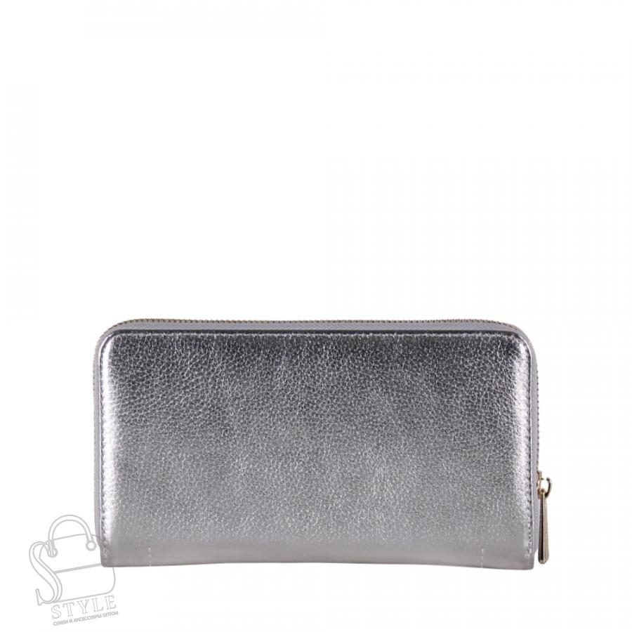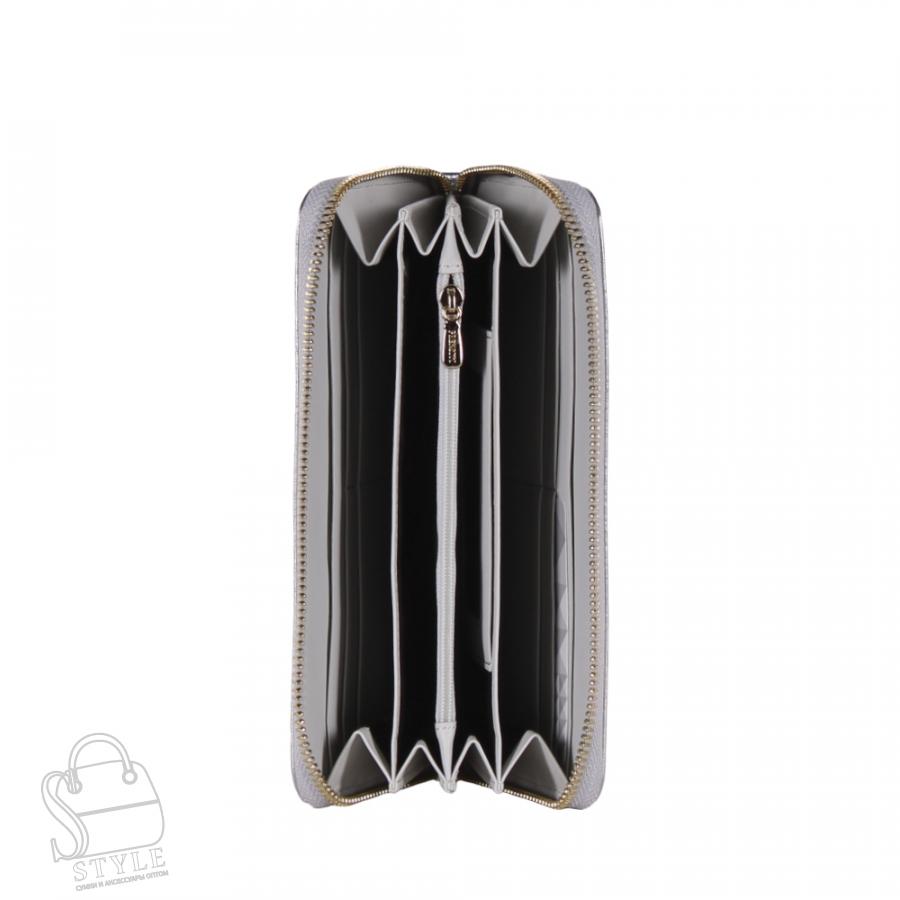 Артикул: 24503T Материал: Натуральная кожа Цвет: Серебристый Длина (см): 20 Высота (см): 10 Кошелек полноразмерный. Снаружи основной отдел на молнии. Внутри восемь отделов для карт, три отдела для купюр и один кармашек на молнии. Фурнитура блестящее золото. Комментарии к товару