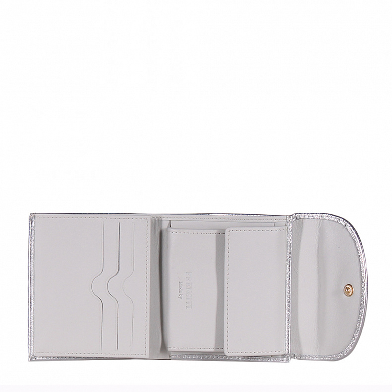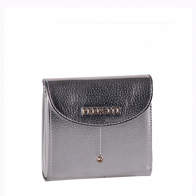 Высота (см): 10 Бренд: Prensiti Материал: Натуральная кожа Компактный кошелек складывается пополам, выполнен из натуральной кожи. Дополнен золотистой фурнитурой. Закрывается на клапан. Внутри: три отдела для карт, один отдел на кнопке, один открытый. Снаружи: основной отдел закрывается на на клапан. Комментарии к товару