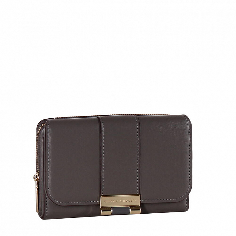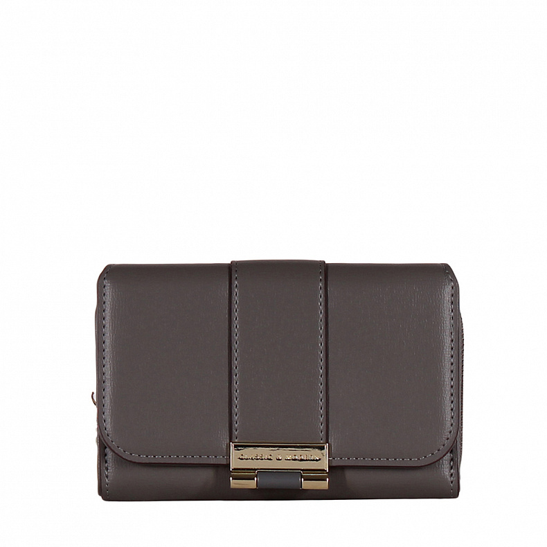 Компактный кошелек складывается пополам, выполнен из экокожи. Дополнен блестящей фурнитурой. Закрывается на клапан.