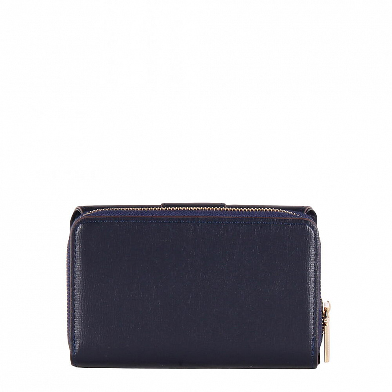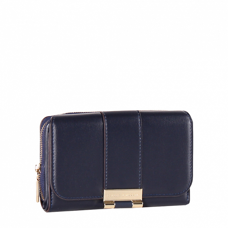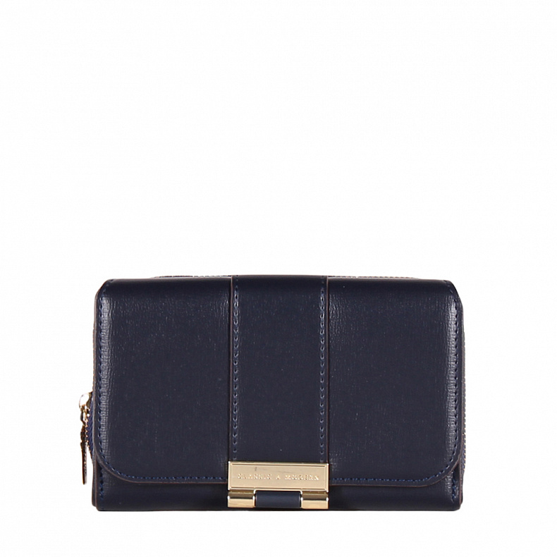 Компактный кошелек складывается пополам, выполнен из экокожи. Дополнен блестящей фурнитурой. Закрывается на клапан.