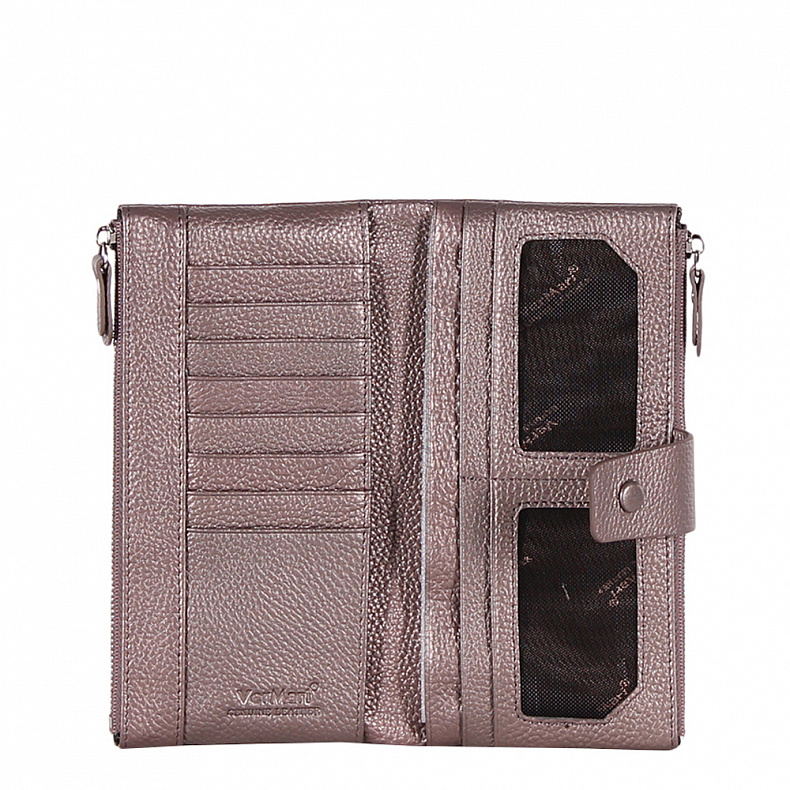 Внутри: два кармана для купюр, двенадцать карманов для визиток и пластиковых карт.