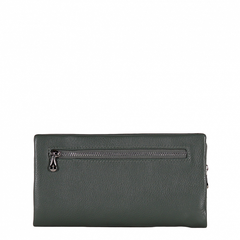 Полноразмерный кошелек складывается пополам, выполнен из натуральной кожи. Дополнен серебристой фурнитурой. Закрывается на магнитные кнопки.