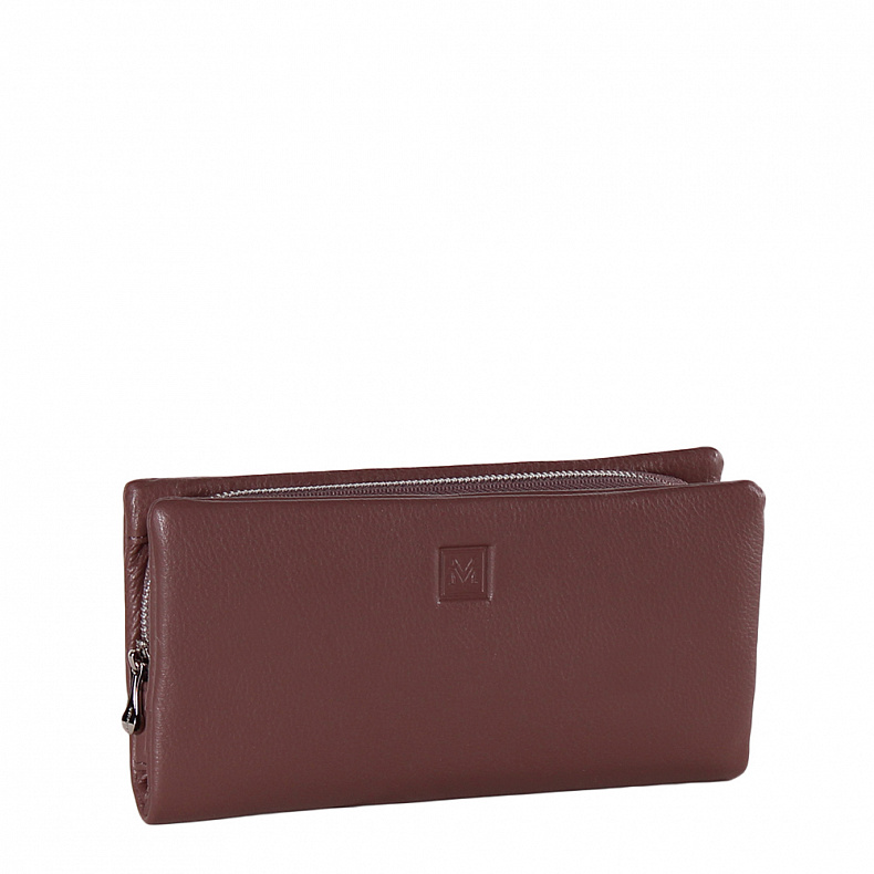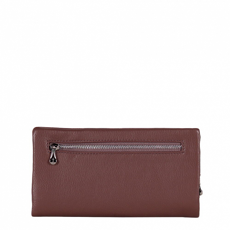 Полноразмерный кошелек складывается пополам, выполнен из натуральной кожи. Дополнен серебристой фурнитурой. Закрывается на магнитные кнопки.