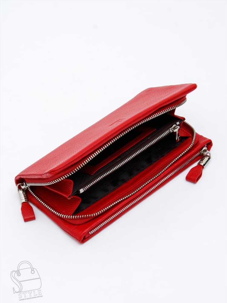 Артикул: 3996 red Материал: Натуральная кожа Цвет: Красный Длина (см): 20,5 Высота (см): 10 Полноразмерный кошелек. Снаружи два отдела на молниях. Внутри отдел с перегородкой на молнии. На задней части есть петелька, чтобы носить в руке. Фурнитура блестящее серебро. Комментарии к товару