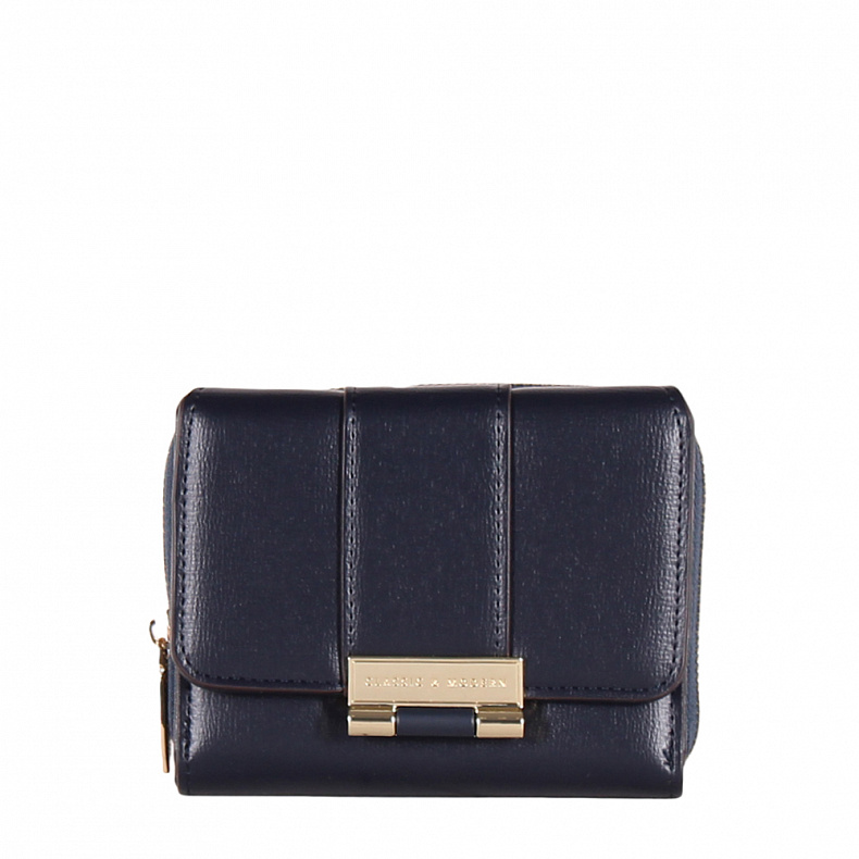 Компактный кошелек складывается пополам, выполнен из экокожи. Дополнен золотистой фурнитурой. Закрывается на клапан.