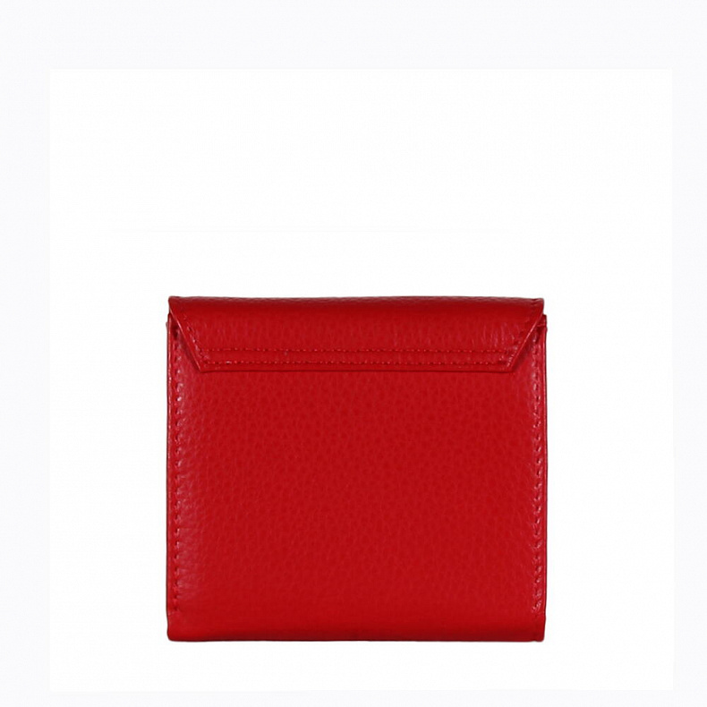 Компактный кошелек складывается пополам, выполнен из натуральной кожи. Дополнен серебристой фурнитурой. Закрывается на кнопку.