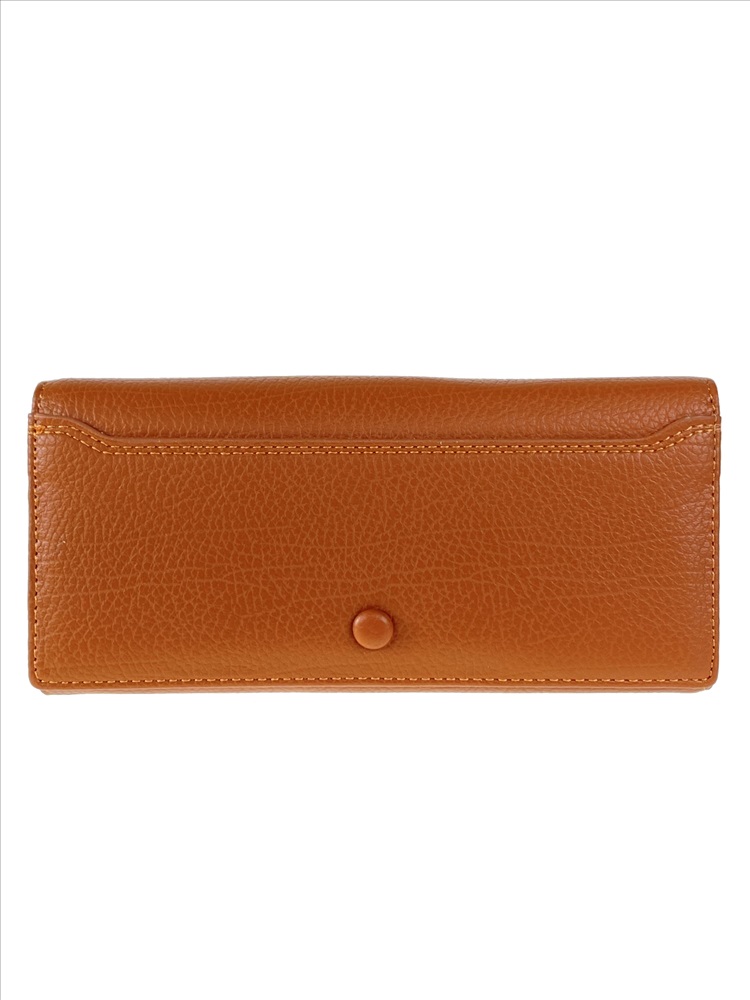 Лаконичный женский кошелёк из искусственной кожи. Закрывается на клапан с магнитной кнопкой, внутри три отделения и и отделение на молнии. На правом развороте открытый карман с отсеком для пластиковых карт.