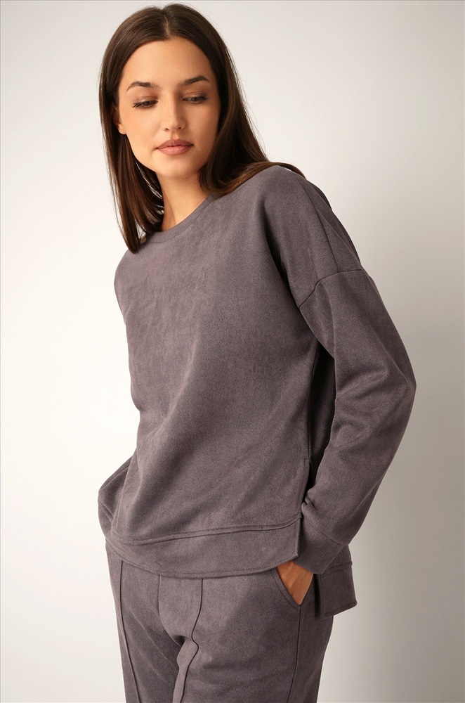 Женский костюм двойка, который влюбляет с первого взгляда! Мягкая экозамша, уютный лонгслив и широкие штаны палаццо создают образ, в котором захочется провести весь день. Универсальный вариант для девушек и женщин, который легко подстраивается под ритм осени и весны.