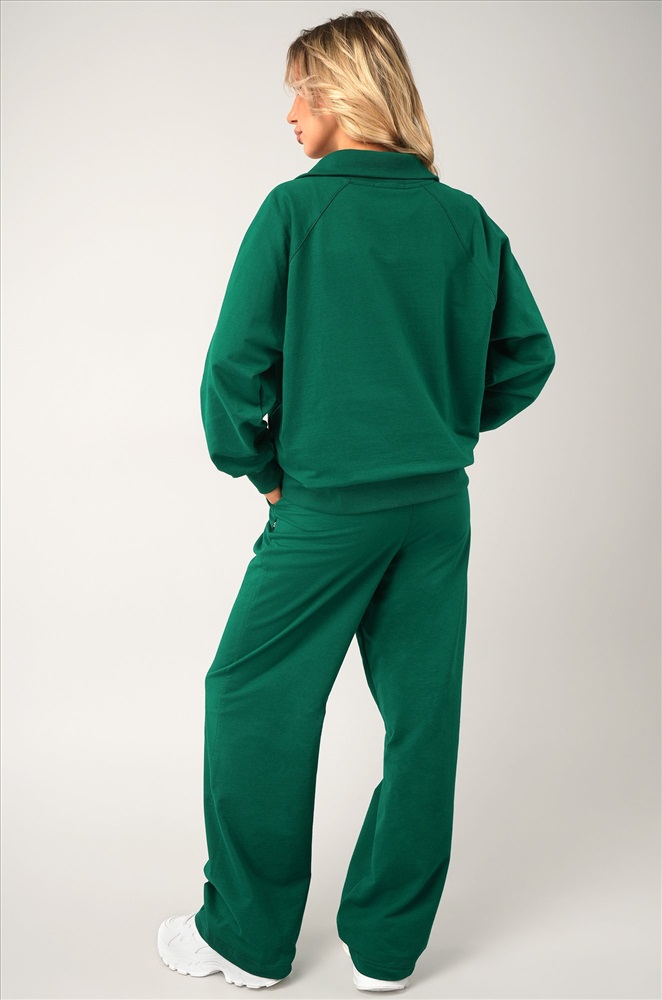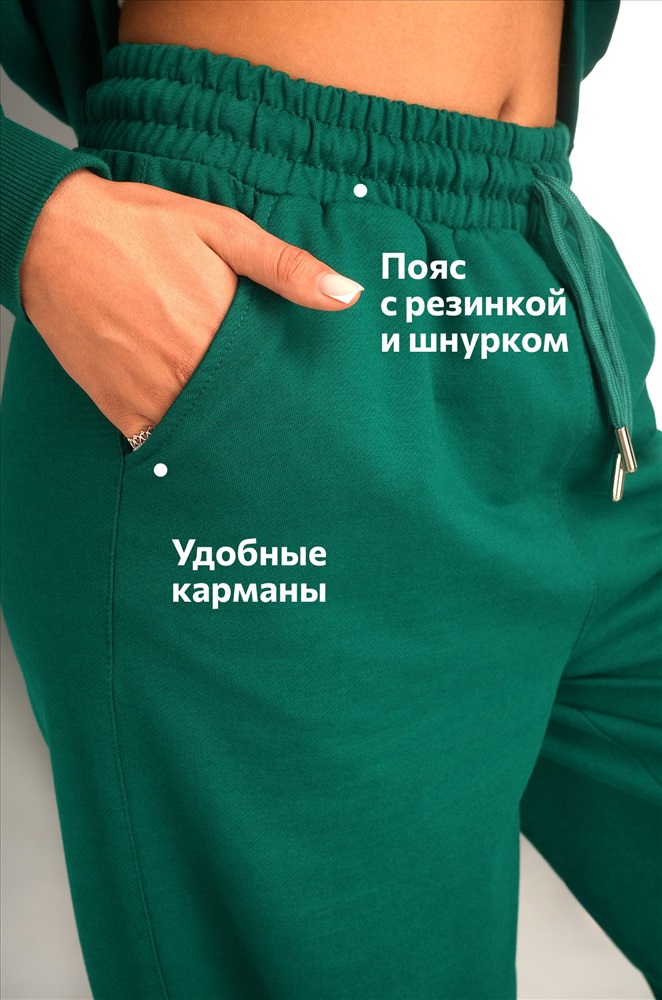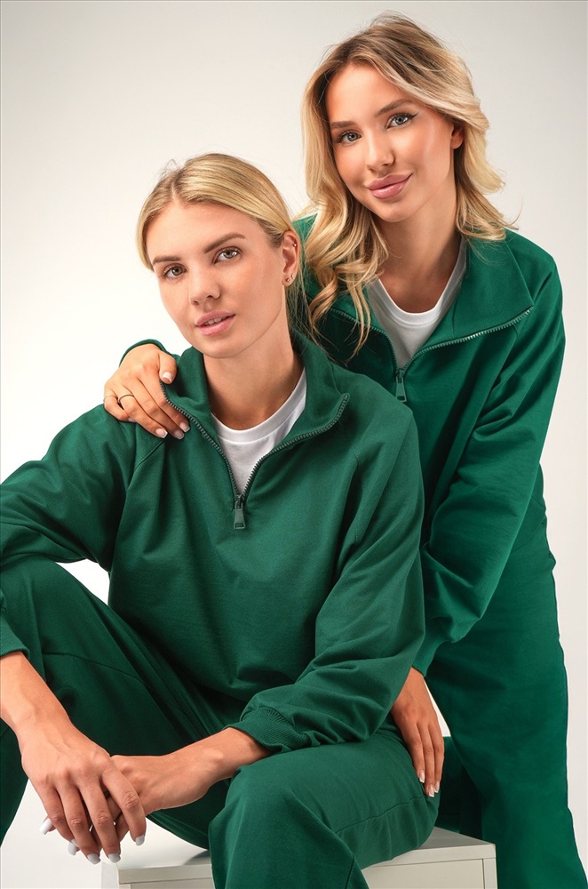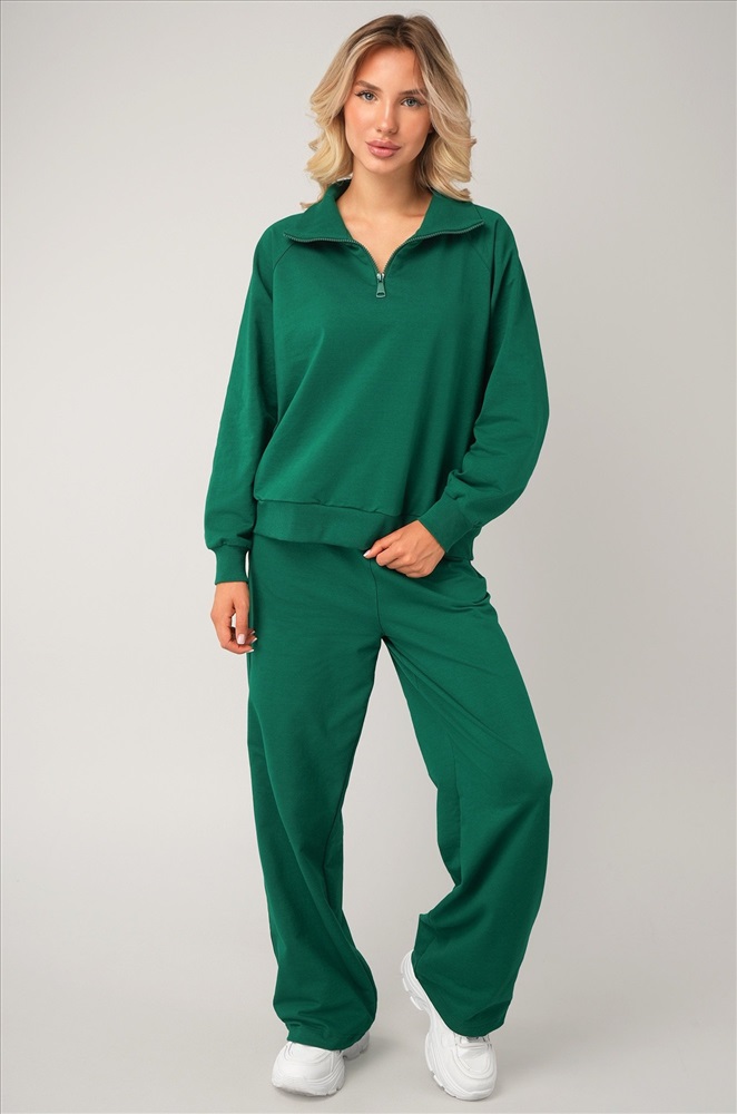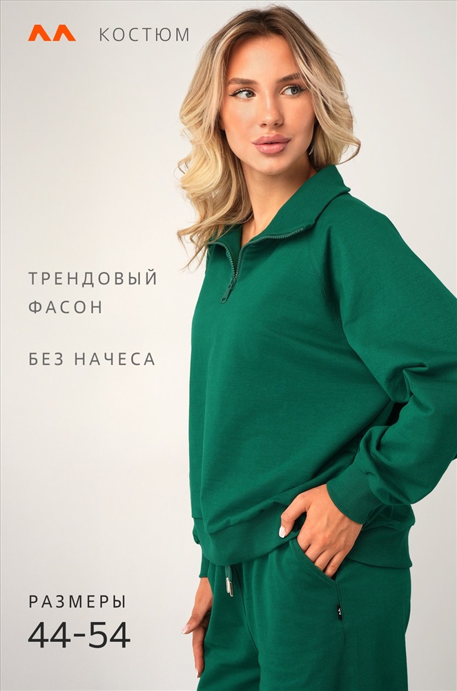 Свободный крой, мягкая горловина, эластичные манжеты, практичные карманы – женский костюм подарит комфорт и уверенность в себе в любой ситуации! Демисезонный костюм двойка для женщин выполнен из хлопкового трикотажа футер. Благодаря молнии на воротнике внешний вид толстовки меняется в зависимости от вашего настроения. Воротник-стойка мягко обрамляет шею: ты можешь расстегнуть молнию и создать более спокойный образ. Штаны умеренно свободные и при этом элегантные. Их главная особенность ― прямой силуэт с мягким эластичным поясом и шнурком для более расслабленной посадки. По бокам находятся карманы. Зеленый костюм с брюками станет отличным вариантом для занятий спортом и активного отдыха. Однотонный костюм идеален для образов в уличном стиле. Рост модели 170 см, параметры: объем груди 88, объем талии 67, объем бедер 97 см. На ней размер 44.