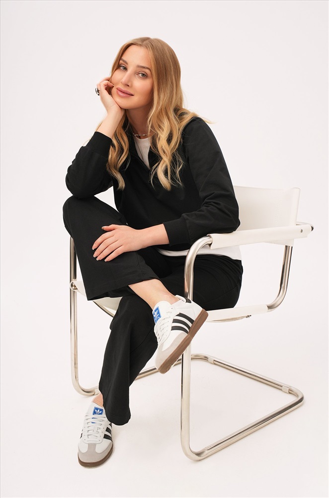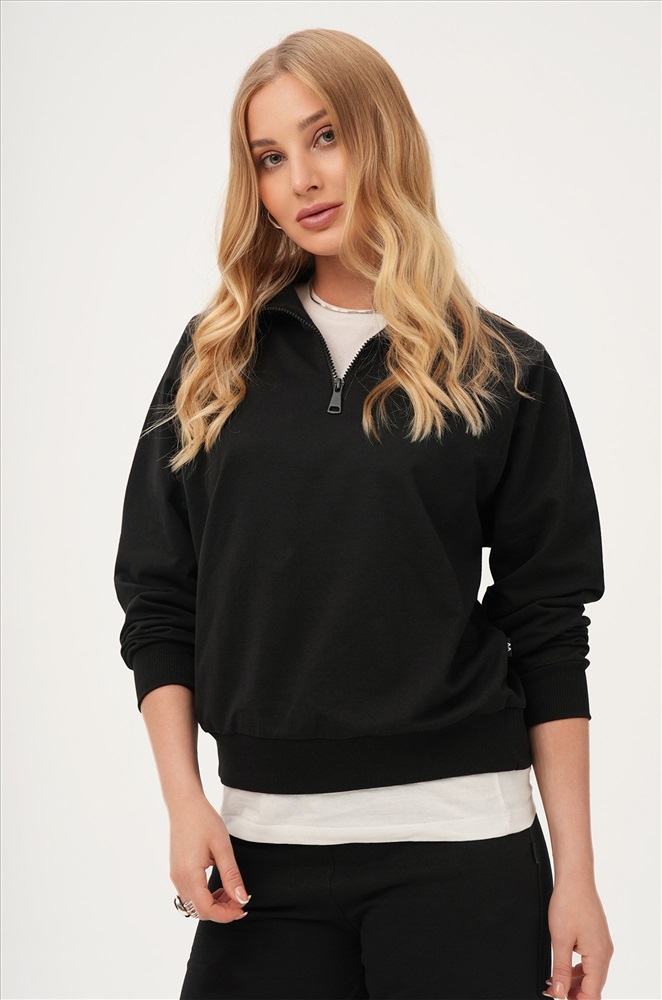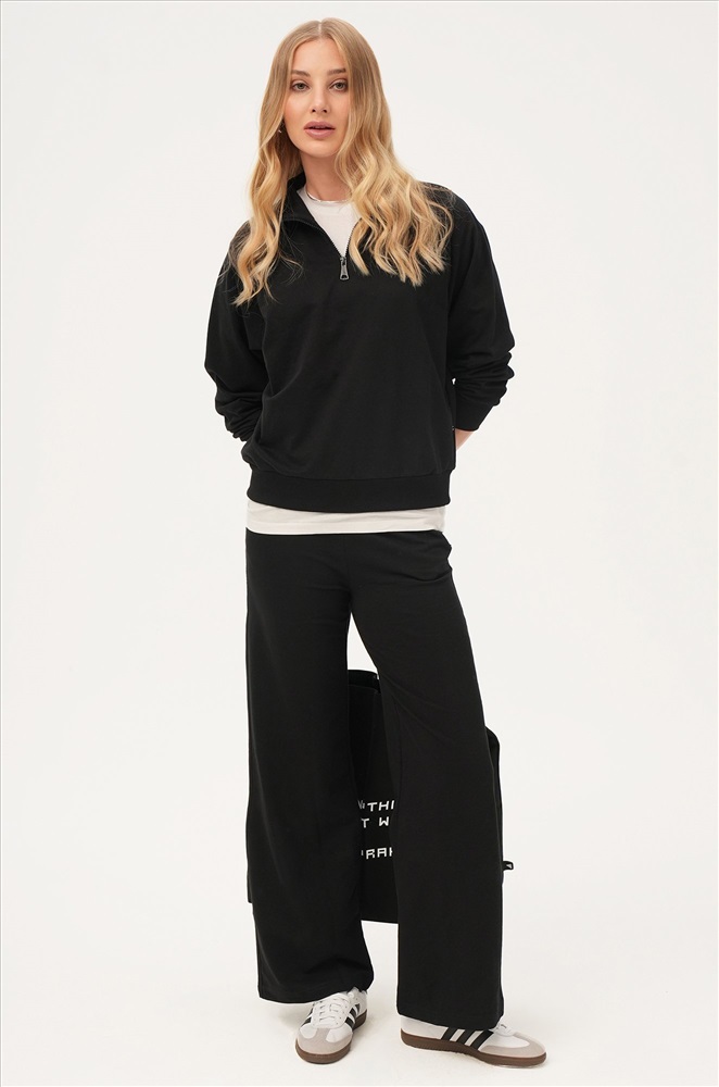 Демисезонный костюм двойка для женщин выполнен из хлопкового трикотажа футер. Благодаря молнии на воротнике внешний вид толстовки меняется в зависимости от вашего настроения. Воротник-стойка мягко обрамляет шею: ты можешь расстегнуть молнию и создать более спокойный образ.