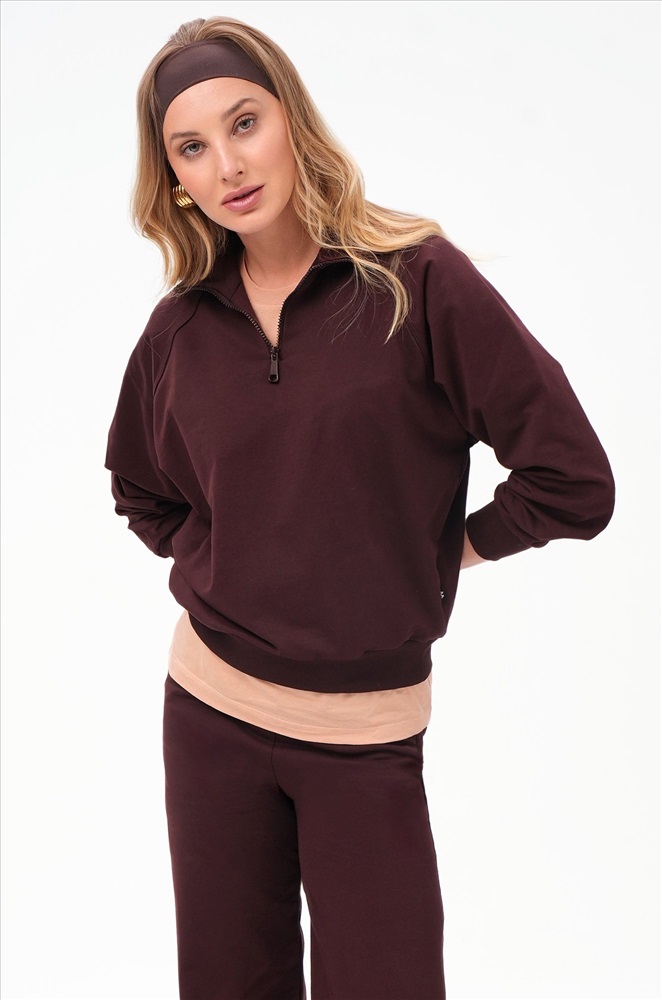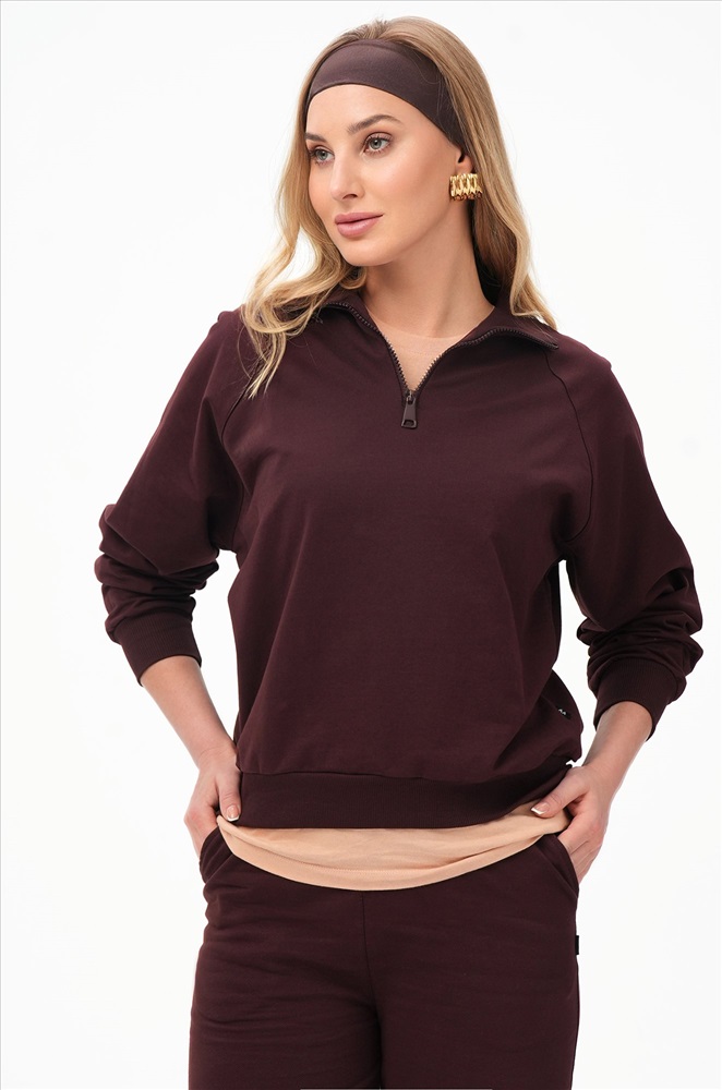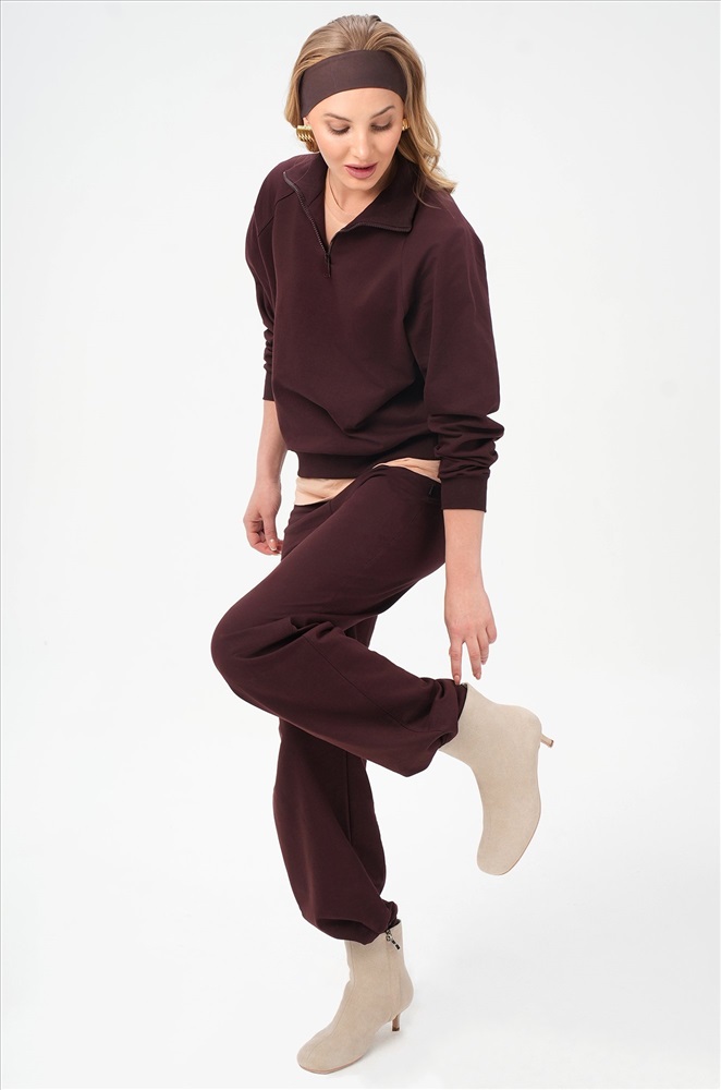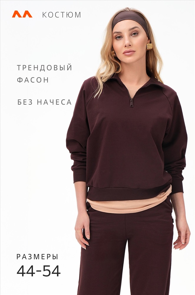 Свободный крой, мягкая горловина, эластичные манжеты, практичные карманы – женский костюм шоколадного цвета подарит комфорт и уверенность в себе в любой ситуации! Демисезонный костюм двойка для женщин выполнен из хлопкового трикотажа футер. Благодаря молнии на воротнике внешний вид толстовки меняется в зависимости от вашего настроения. Воротник-стойка мягко обрамляет шею: ты можешь расстегнуть молнию и создать более спокойный образ. Штаны умеренно свободные и при этом элегантные. Их главная особенность ― прямой силуэт с мягким эластичным поясом и шнурком для более расслабленной посадки. По бокам находятся карманы. Коричневый костюм с брюками станет отличным вариантом для занятий спортом и активного отдыха. Однотонный костюм идеален для образов в уличном стиле. Рост модели 170 см, параметры: объем груди 88, объем талии 67, объем бедер 97 см. На ней размер 44.