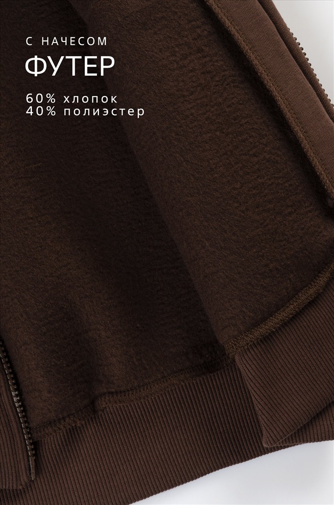 Бренд: Happyfox Страна: Узбекистан Состав: 60% хлопок, 40% полиэстер Материал: Футер с начёсом Плотность ткани: 320 г/м2 Цвет: шоколадный