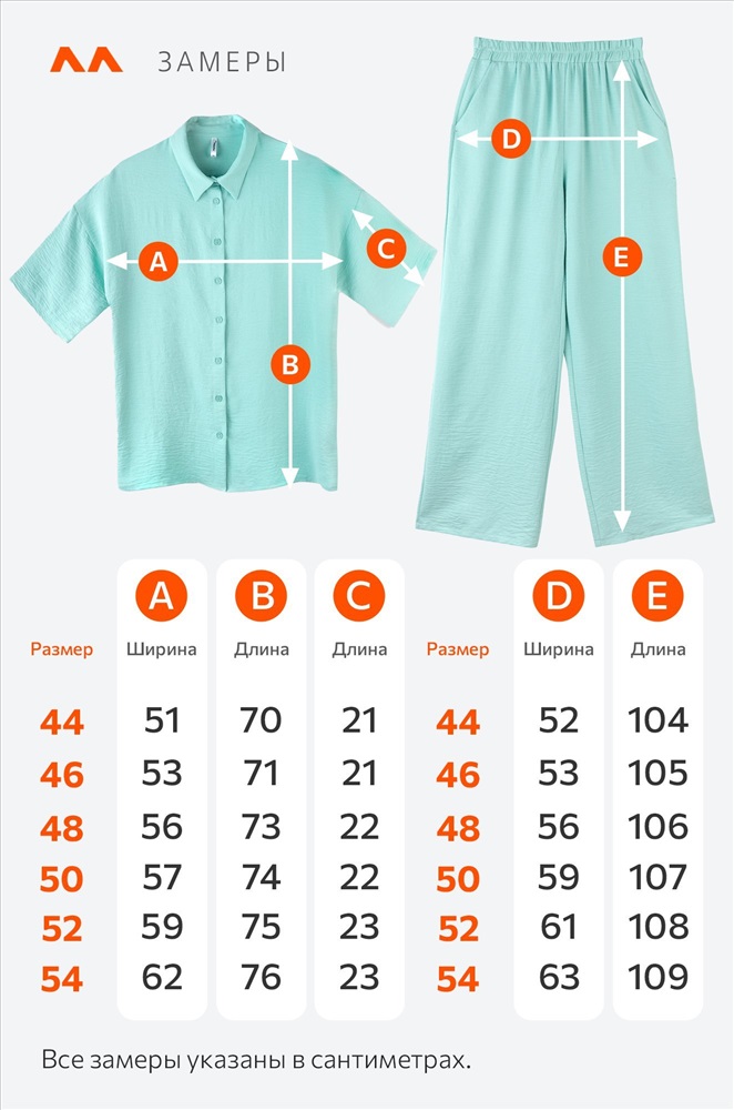 Размер 44: рубашка: длина:70 см; ширина:51 см; длина рукава внешняя:21 см; длина рукава внутренняя:15 см.