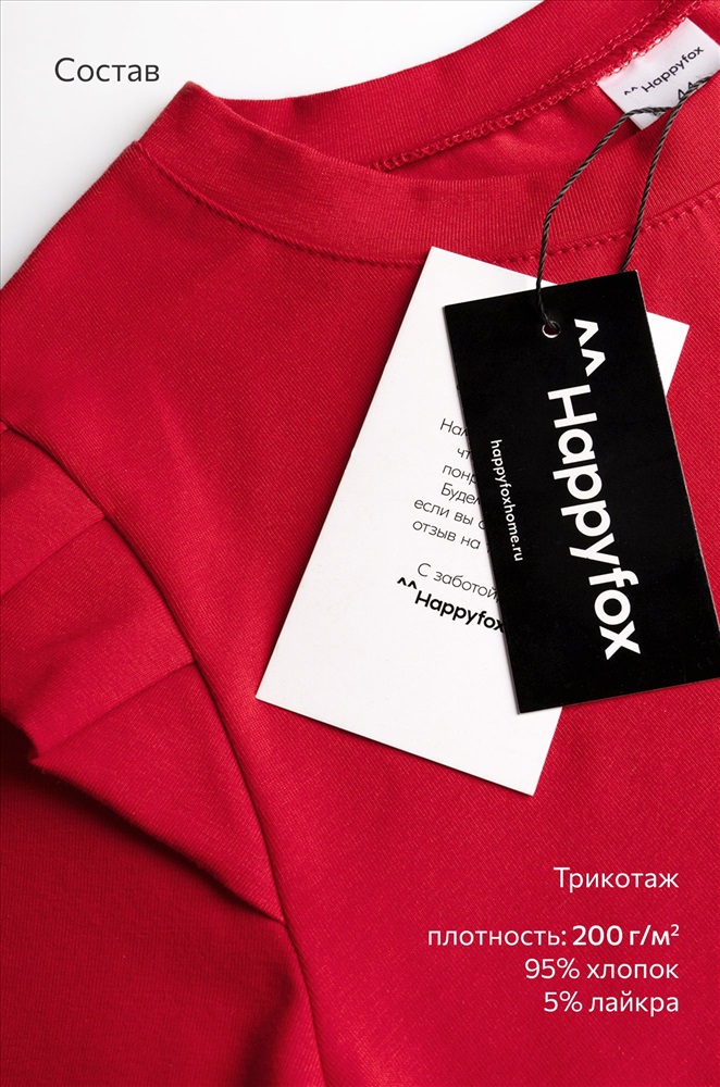 Бренд: Happyfox Страна: Россия Состав: 95% xлопок, 5% лайкра Материал: Кулирная гладь Плотность ткани: 200 г/м2 Цвет: т.красный