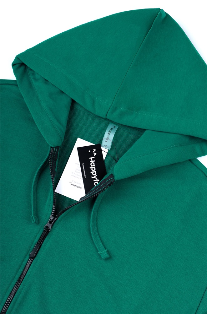 — однотонный зеленый костюм со штанами выполнен из плотного футера трехнитки;