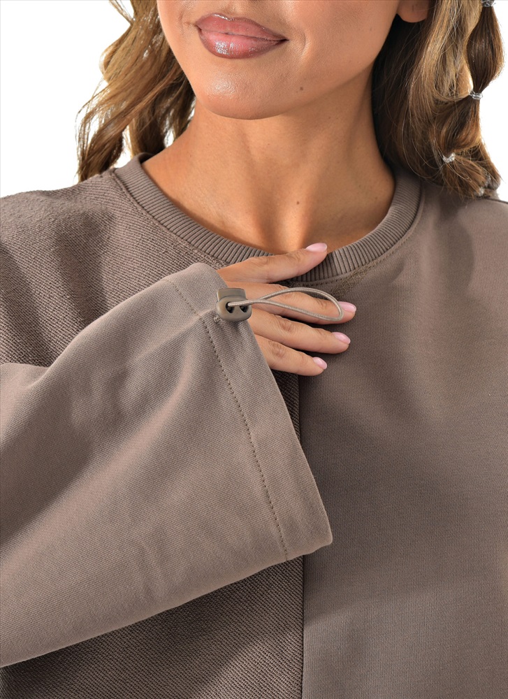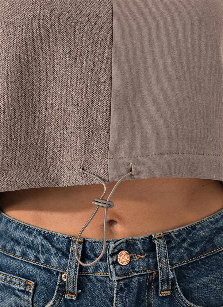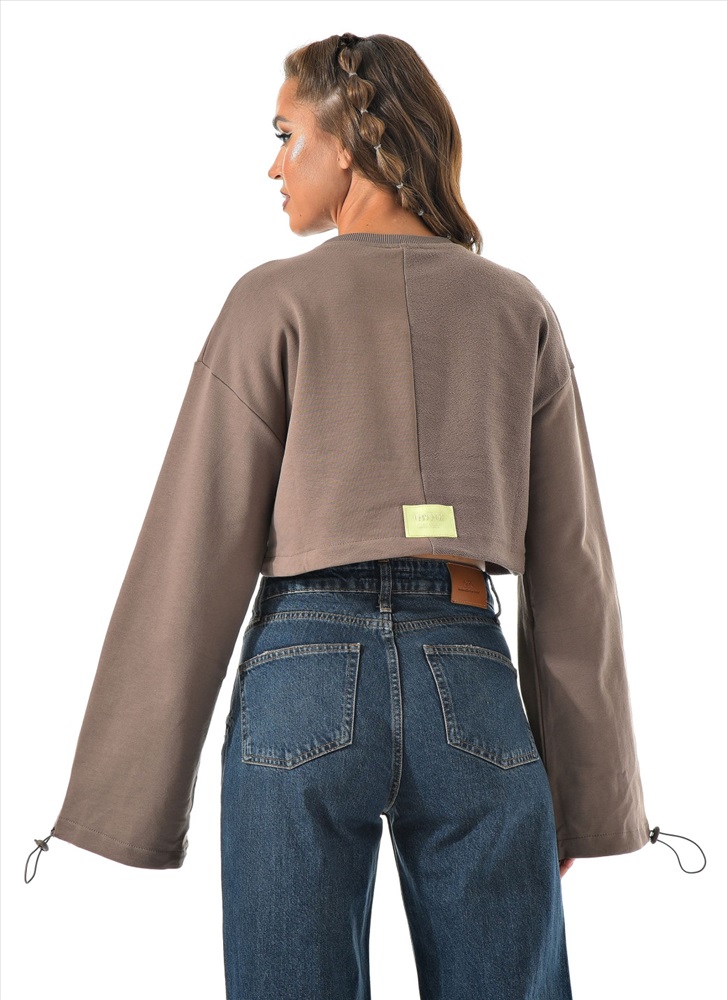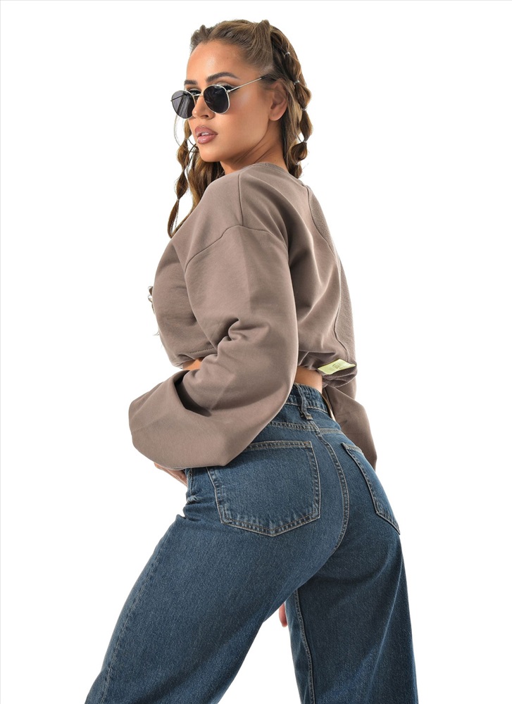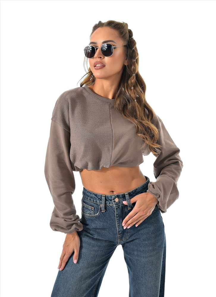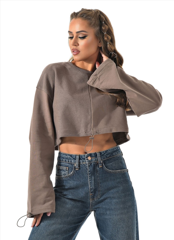 Укороченный свитшот бренда CRACPOT это образец женской молодежной моды удобный стильный. По низу проходит шнурок для смены образов можно затянуть или носить свободно .