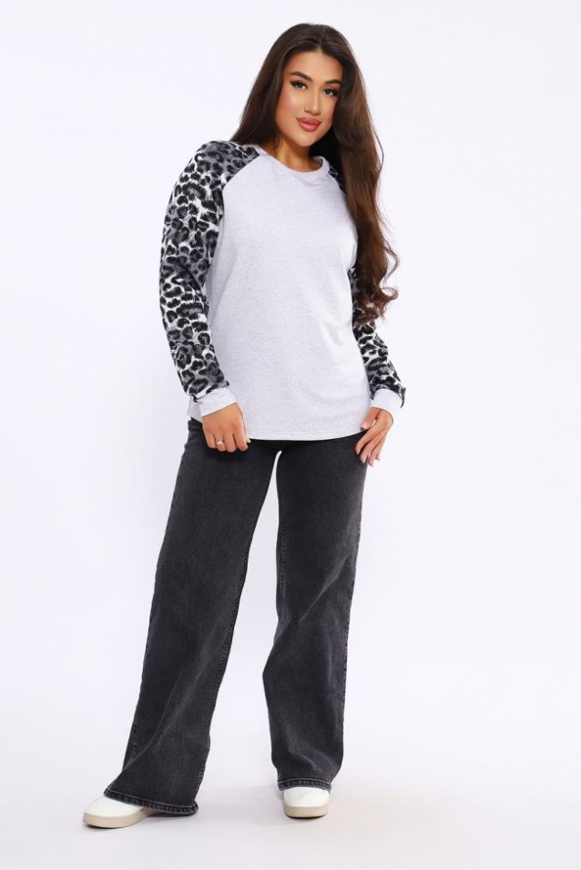 Представляем вашему вниманию уникальный свитшот из хлопка с футером 2-х нитки, который станет настоящим хитом сезона 2024-2025. Этот свитшот идеально сочетает в себе комфорт и стиль, обеспечивая вам уют в холодное время года. Основной акцент в дизайне сделан на асимметричную комбинацию цветов: базовый серый и черный плавно переплетаются с эффектным леопардовым принтом, создавая динамичный и современной образ. Такой свитшот отлично подойдет для смелых и уверенных в себе, кто любит выделяться из толпы. Удобный крой и мягкий материал обеспечивают максимальный комфорт, а уникальный принт добавляет изюминку в каждый ваш образ. Вы можете сочетать его как с джинсами, так и с юбками, подчеркивая свою индивидуальность. Этот свитшот станет вашим любимым предметом гардероба и идеальным решением для создания стильных повседневных нарядов!