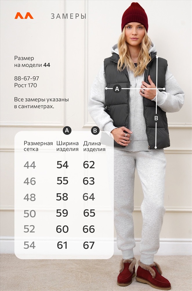 Размер 46: длина:63 см; ширина:55 см. Размер 48: длина:64 см; ширина:58 см. Размер 50: длина:65 см; ширина:59 см. Размер 52: длина:66 см; ширина:60 см. Размер 54: длина:67 см; ширина:61 см. *замеры выборочные, могут незначительно отличаться. Комментарии к товару