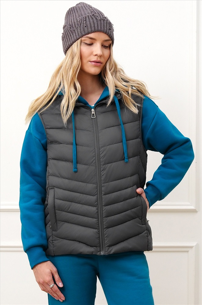 Встречай эту осень стильно! Женская утеплённая жилетка на молнии от Happyfox — это тот самый штрих, который добавит твоему образу лёгкости и уверенности. Темно-серая стёганая безрукавка подчёркивает силуэт, выглядит актуально и при этом дарит ощущение тепла и уюта.