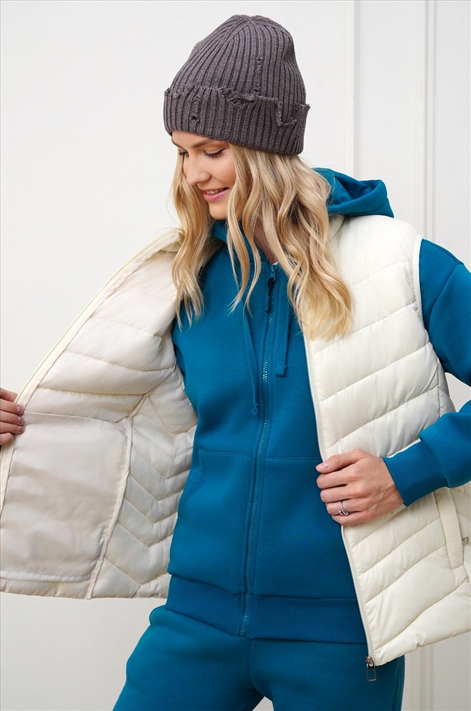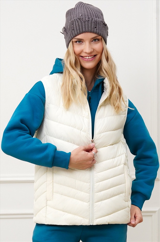 Встречай эту осень стильно! Женская утеплённая жилетка на молнии от Happyfox — это тот самый штрих, который добавит твоему образу лёгкости и уверенности. Стёганая безрукавка молочного цвета подчёркивает силуэт, выглядит актуально и при этом дарит ощущение тепла и уюта.