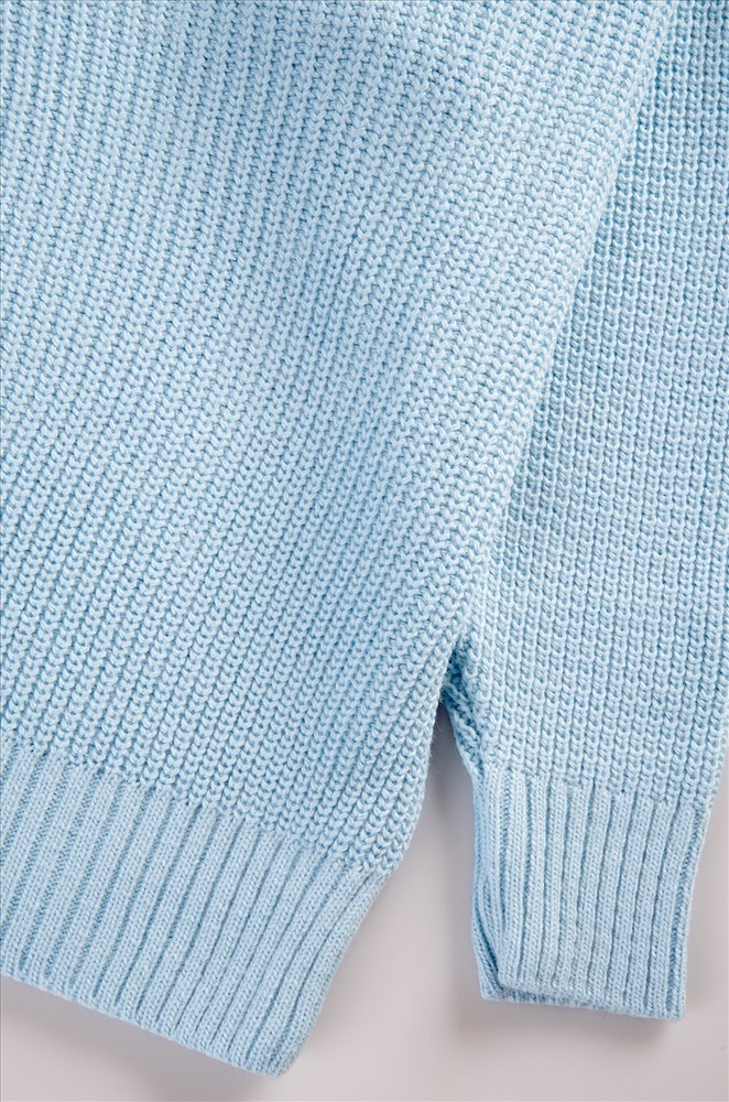 Женский джемпер — это воплощение уюта, стиля и элегантности. Голубой свитер выполнен из мягкого вязаного трикотажа и станет прекрасным выбором для осени и зимы.