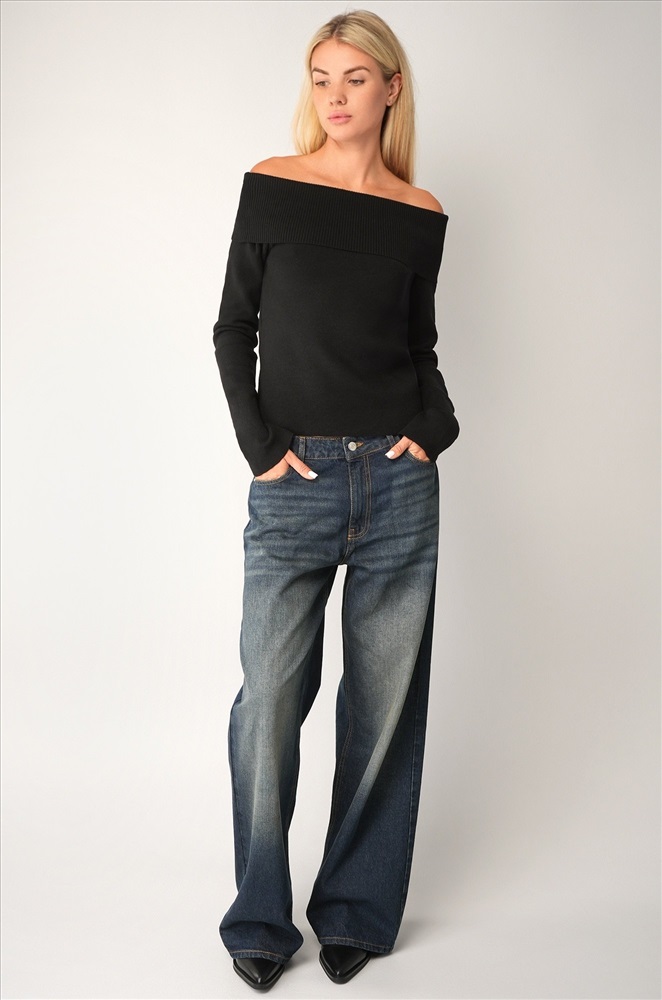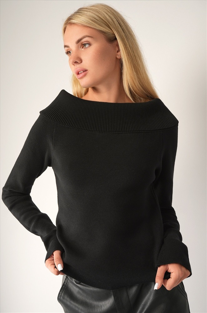 Кофта имеет облегающий крой, который гармонично подчёркивает силуэт, создавая женственный образ. Прямой крой и открытые плечи добавляют элемент изысканности, а декольте с отворотом вносит деликатную нотку романтичности. Трикотажная демисезонная модель с длинным рукавом подходит для разнообразных решений.