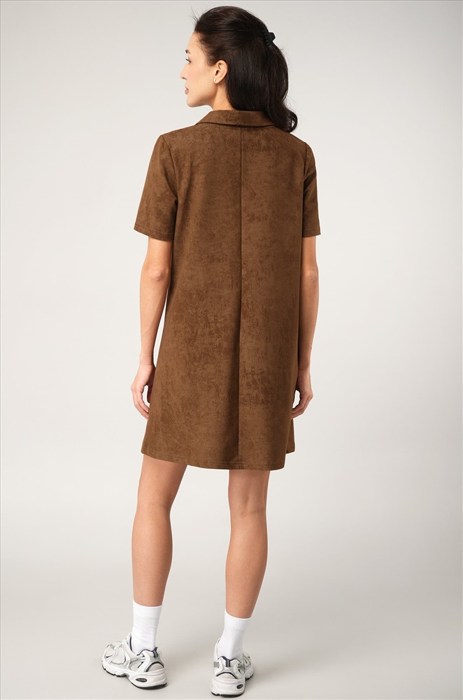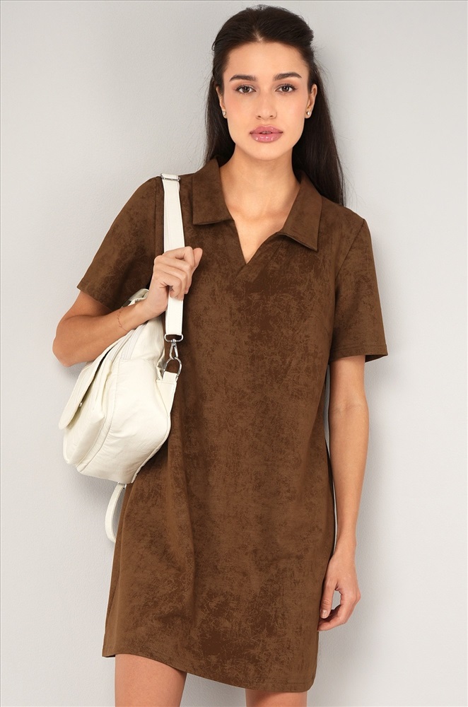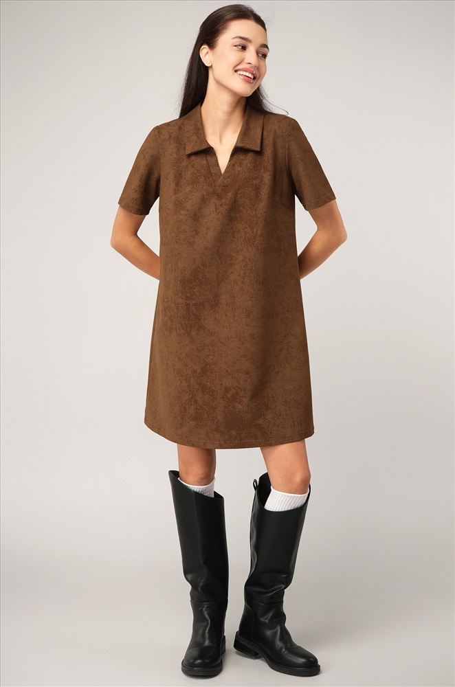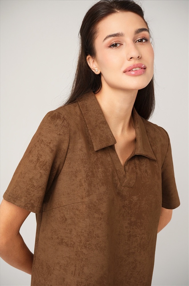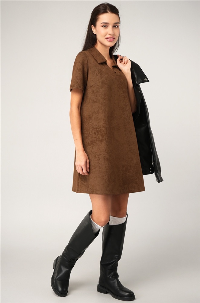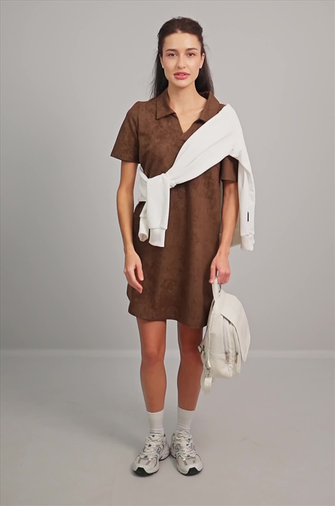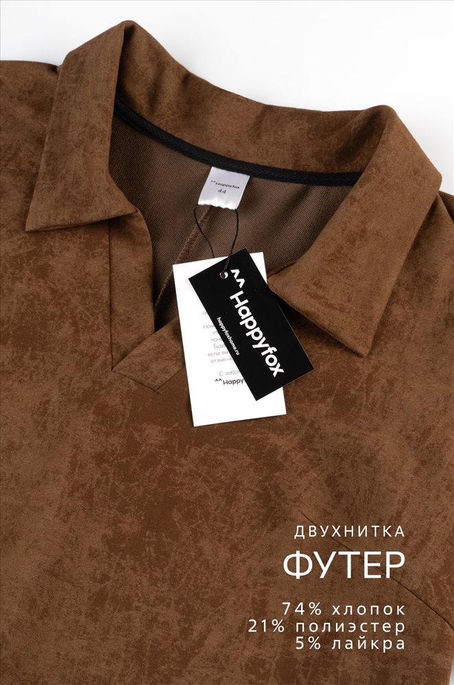 Преимущества: — платье поло с вареным винтажным эффектом выполнено из хлопкового трикотажа футер двухнитка (240 г/м2), который дышит и приятен к телу; — хлопковое платье с эффектом варенка хорошо сохраняет форму; — фасон мини подчеркивает женственность и придает образу легкость; — короткое платье-поло с отложным воротником смотрится стильно; — свободный силуэт не сковывает движений. Коричневое платье — прекрасное решение для образов в спортивном стиле.