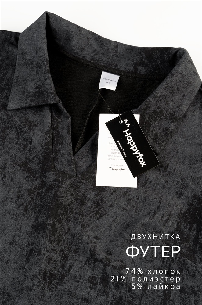 Бренд: Happyfox Серия: Happyfox- Винтаж Страна: Россия Состав: 74% хлопок, 21% полиэстер, 5% лайкра Материал: Футер двухнитка Плотность ткани: 240 г/м2 Цвет: винтаж.черный