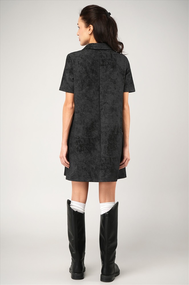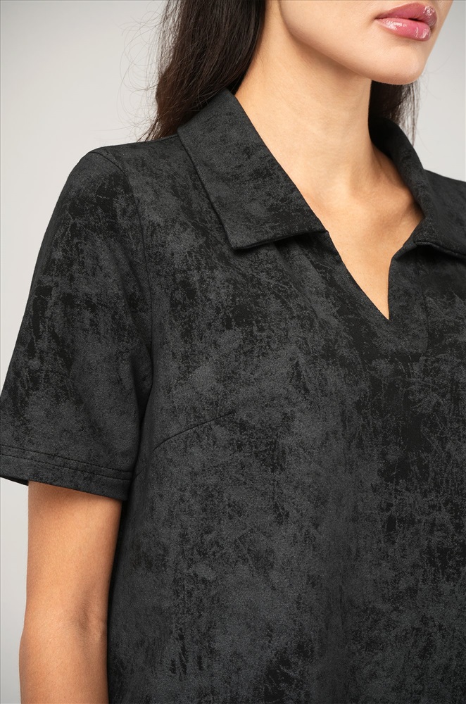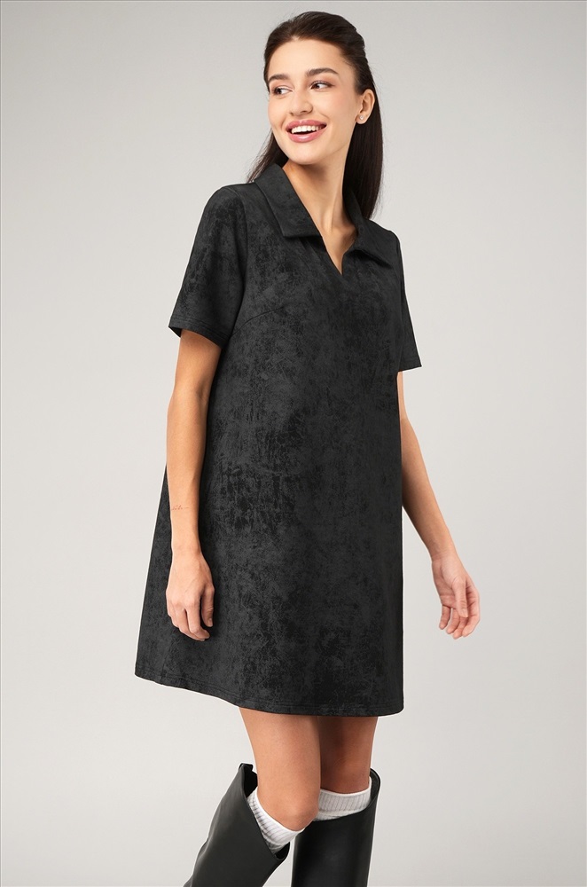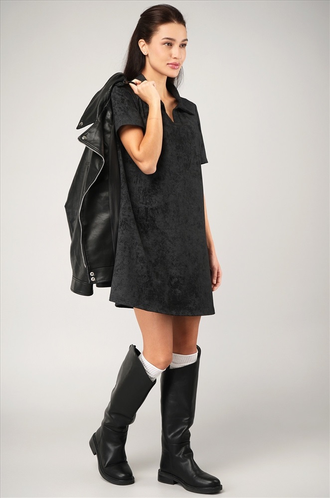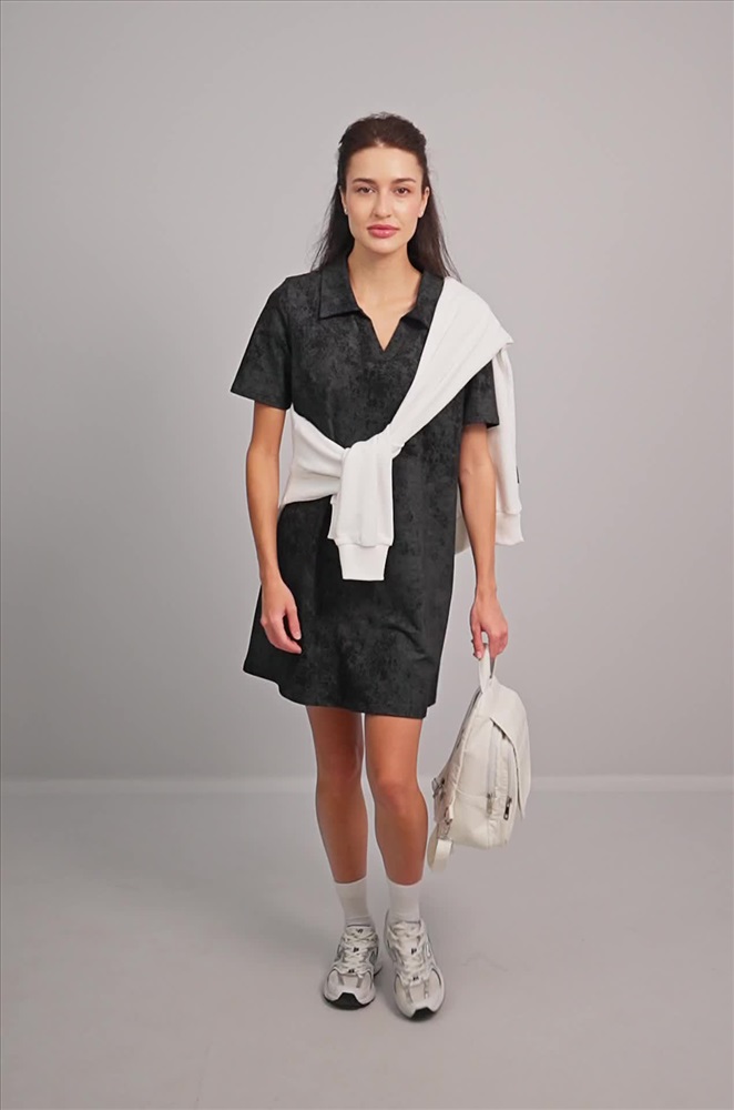Преимущества: — платье поло с вареным винтажным эффектом выполнено из хлопкового трикотажа футер двухнитка (240 г/м2), который дышит и приятен к телу; — хлопковое платье с эффектом варенка хорошо сохраняет форму; — фасон мини подчеркивает женственность и придает образу легкость; — короткое платье-поло с отложным воротником смотрится стильно; — свободный силуэт не сковывает движений. Черное платье — прекрасное решение для образов в спортивном стиле.