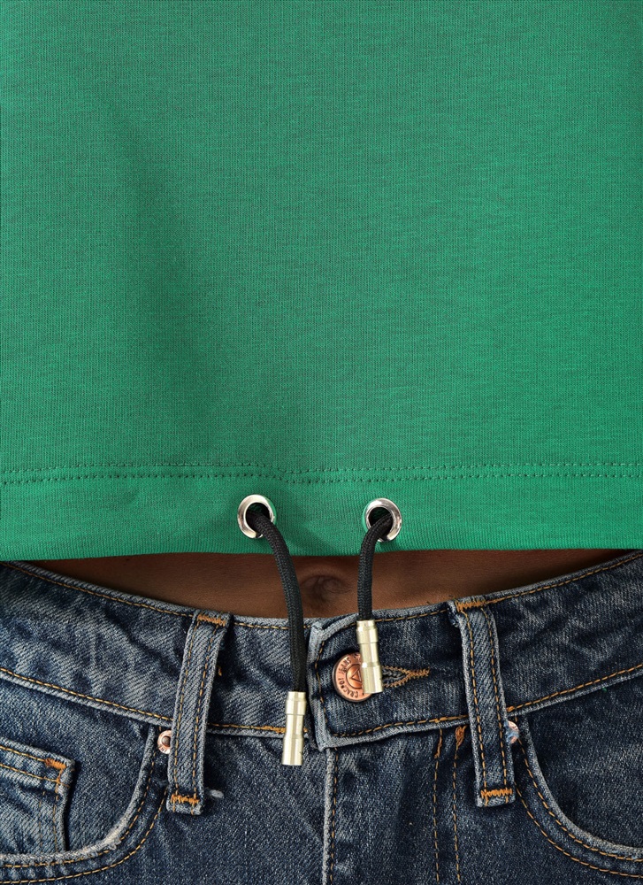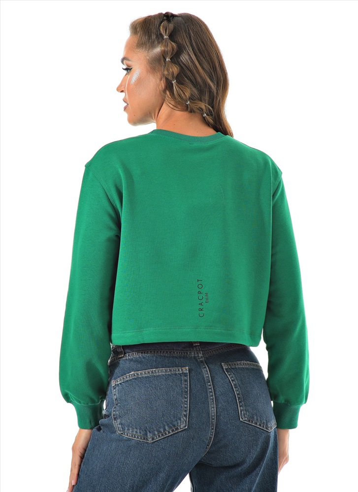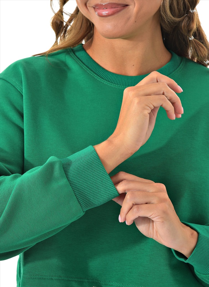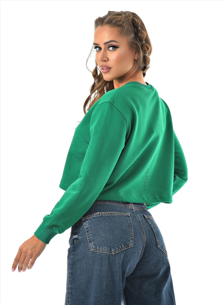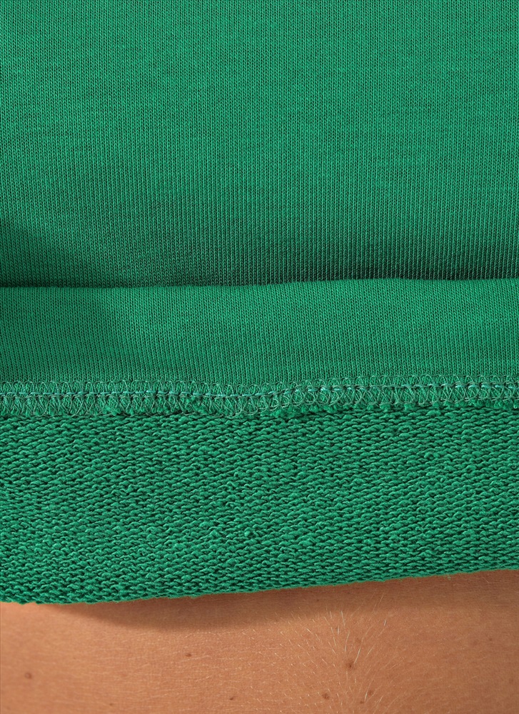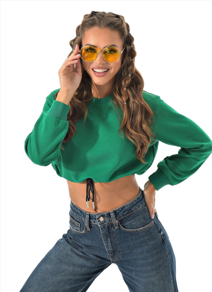 Этот женский свитшот свободного кроя длиной до линии талии выполнен из плотной мягкой ткани без начеса премиум-качества. Его состав — 70% натурального хлопка и 30% эластана, что делает его приятным к телу и эластичным.