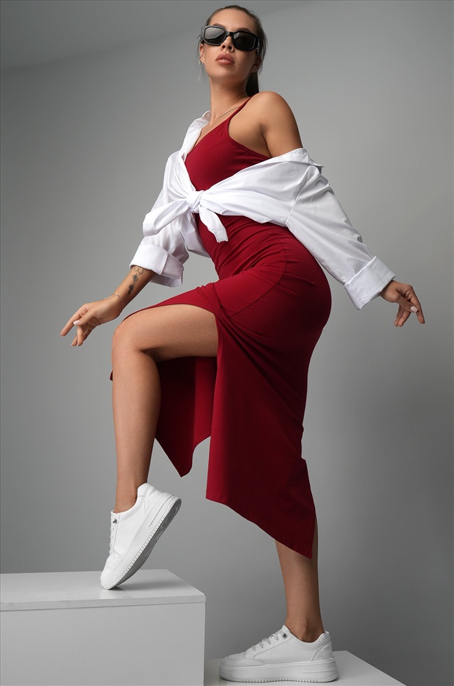 Женское облегающее платье, которое говорит само за себя: соблазнительное, женственное и готовое к самому жаркому лету. Трикотажное платье-майка в стиле скимс — находка для тех, кто обожает сочетание комфорта и красоты. Бордовый цвет подчёркивает свежесть, а утягивающий силуэт делает его любимчиком в списке надеть сразу.