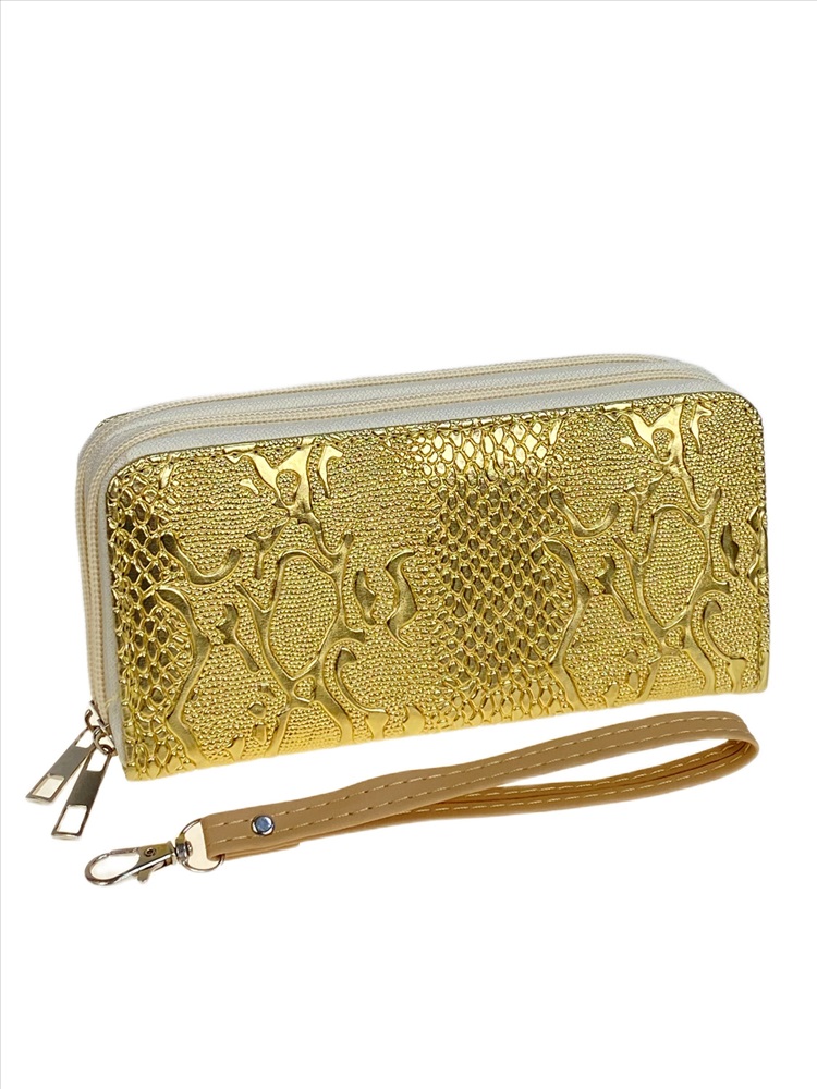 Длина: 18 см Высота: 9 см Материал: Искусственная кожа Упаковка: полиэтиленовый пакет Полноразмерный женский кошелёк изискусственной кожи. Кошелёк имеет два отделения, каждое закрывается на круговую молнию. Внутри отделения под купюры, отделение на молнии, 12 отсеков для карт. В комплекте ремешок.