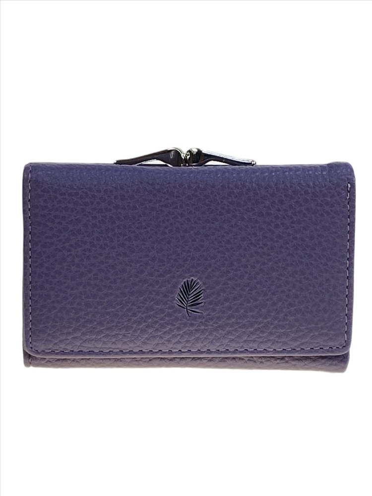 Компактный женский кошелёк из искусственной кожи. Кошелёк закрывается на кнопку. Внутри одно полноразмерное отделение под купюры, 6 отсеков для карт и три небольших открытых отделения. Снаружи отделение с фермуаром.