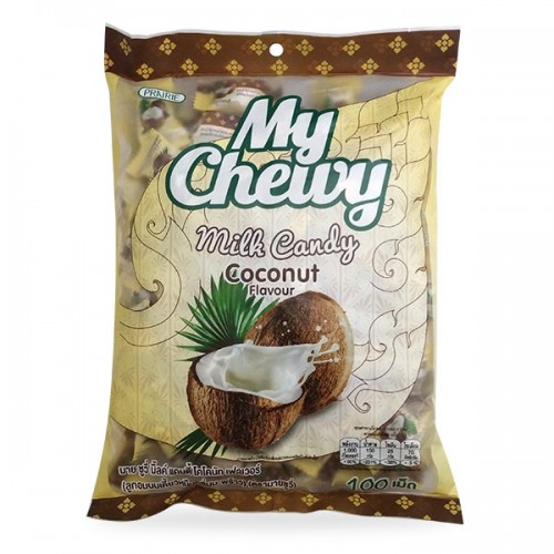 Жевательные конфеты из Таиланда My Chewy со вкусом тайского кокоса - это великолепные молочные ириски с желейной начинкой из мякоти спелого кокоса.