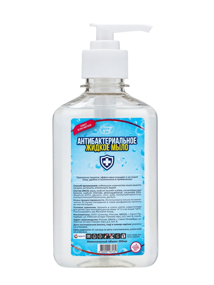 Универсальное жидкое мыло с приятным ароматом используется для эффективного очищения рук от различных загрязнений.