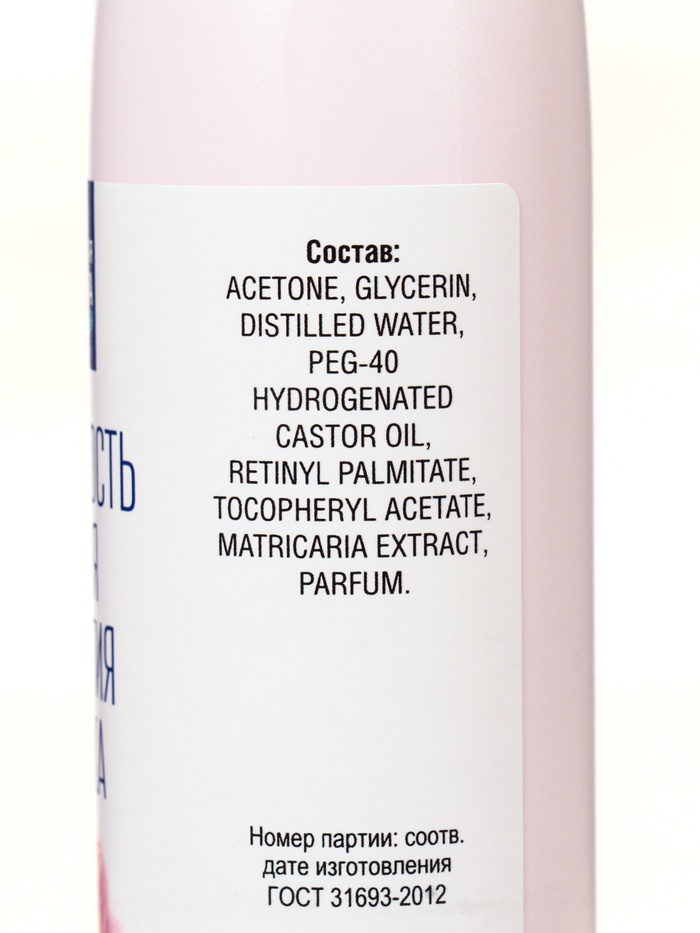 Габариты: 4 x 4 x 13,5 Страна: Россия В боксе: 36 шт Состав: См. на упаковке Материалы: см. на упаковке Фасовка: по 1 шт Индивидуальная упаковка: Без упаковки Сертификат: ЕАС Объём, мл: 150 Вид: Жидкость для снятия лака Темпер. ограничение НЕ НИЖЕ ℃: 0 Вид: С ацетоном Жидкость для снятия лака "Чистая сила" Супер Эффект обладает эффективной формулой. В составе имеет ацетон. Легко удаляет любые виды лаков и блесток. Не сушит ногти. Имеет легкий приятный аромат. Подходит для регулярного применения. Меры предосторожности: только для наружного применения. Хранить в недотсупном для детей месте. Способ применения: смочить влажный диск, протереть ногтевую пластину. Состав: ACETONE, ACETATE, GLYCERIN, DISTILLED WATER, PEG-40, HYDROGENATED CASTOR OIL, RETNYL PALMITATE, TOCOPHERYL ACETATE, MATRIACARIA EXTRACT, PARFUM, CL 45410. Комментарии к товару