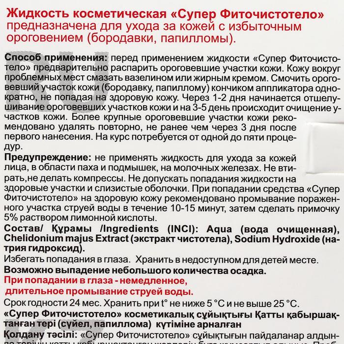 Жидкость косметическая «СуперФиточистотело» предназначена для ухода за кожей с избыточным ороговением.