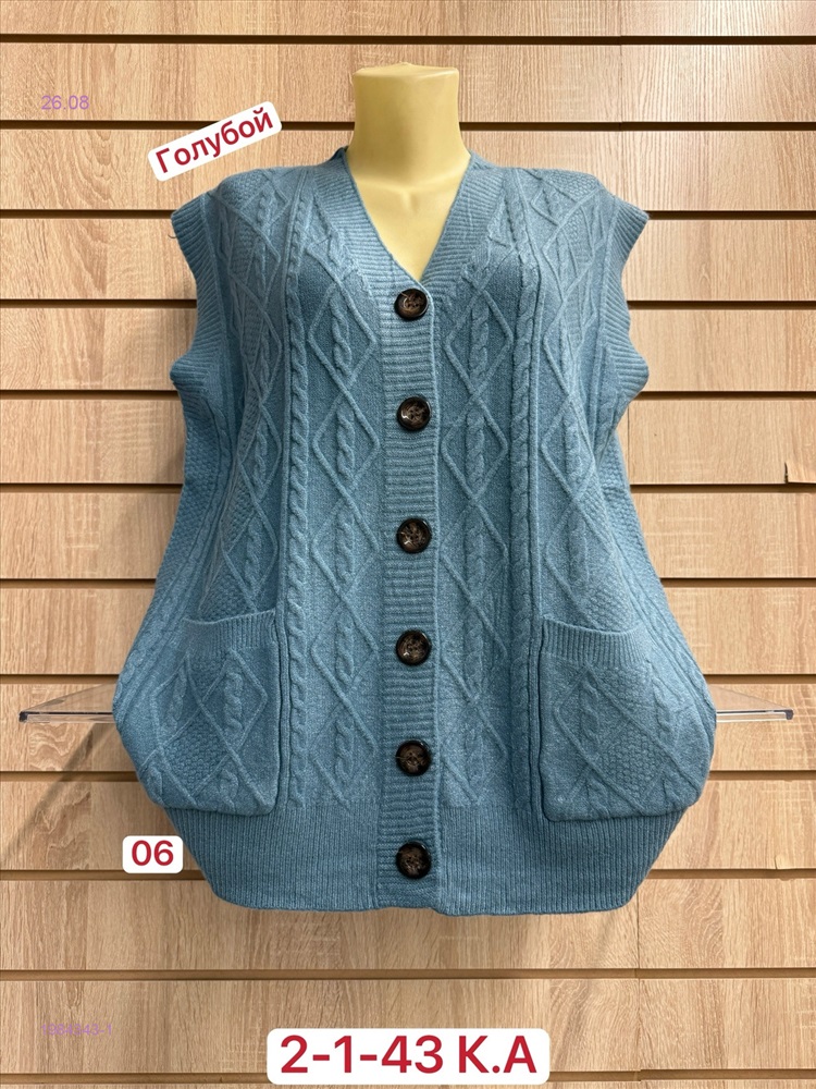 Жилет Женский Вязаный Состав 52% CASHMERE, 28% WOOL, 15% COTTON, 5% ELASTANE, ОГ 120см, Длина 70см